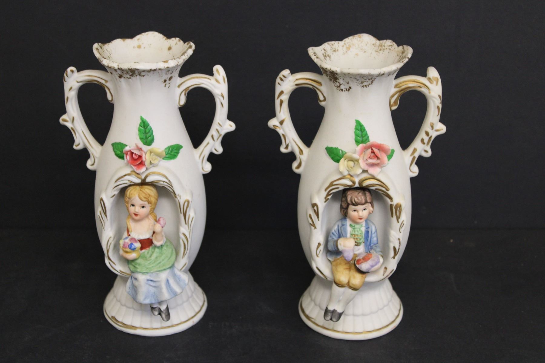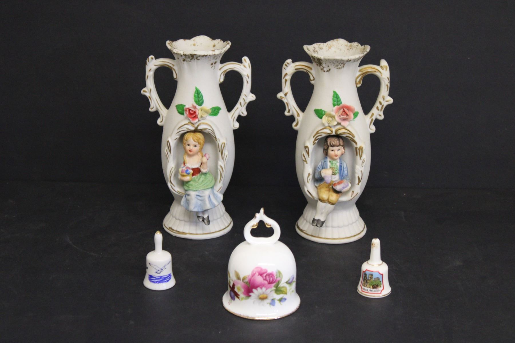 (2) Porcelain Figurine Vases, (3) Porcelain Bells