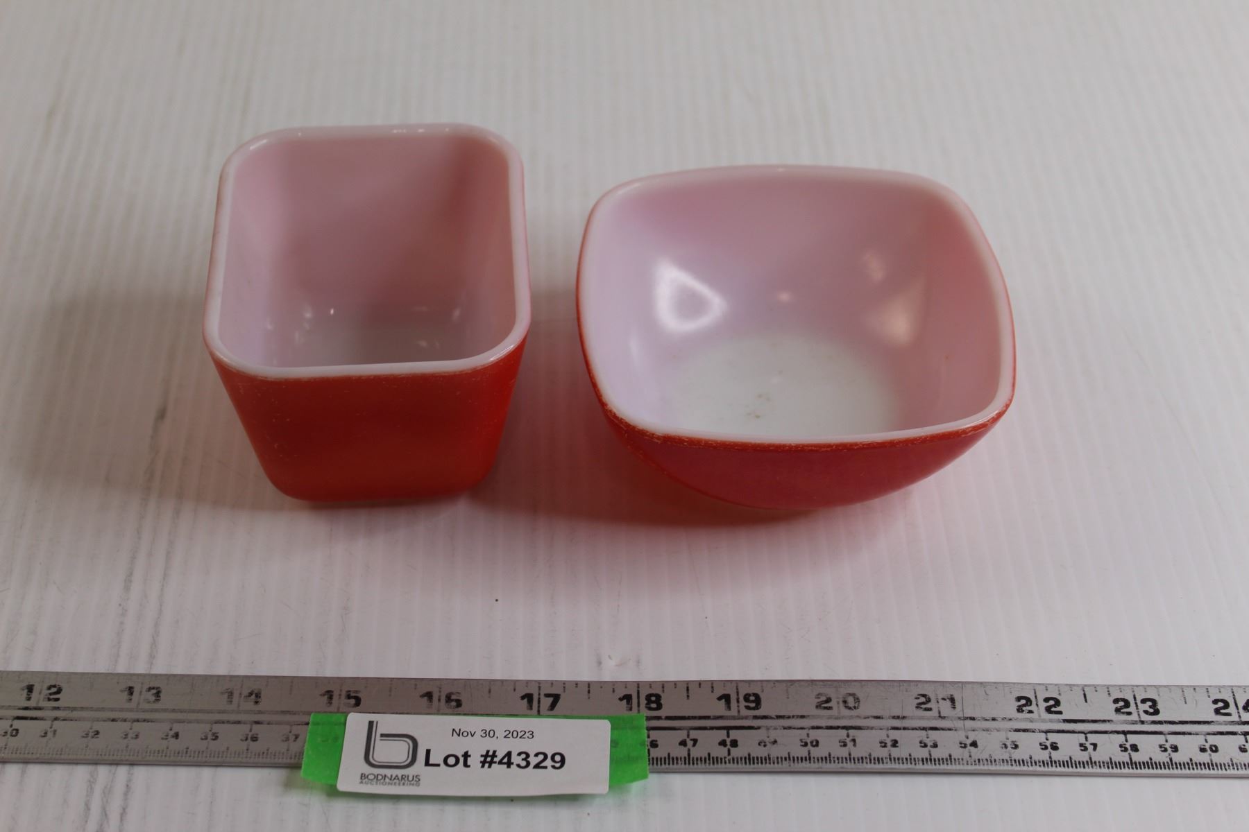 (2) Pyrex Dishes - Red Refrigerator Dish (No Lid) + Square Bowl