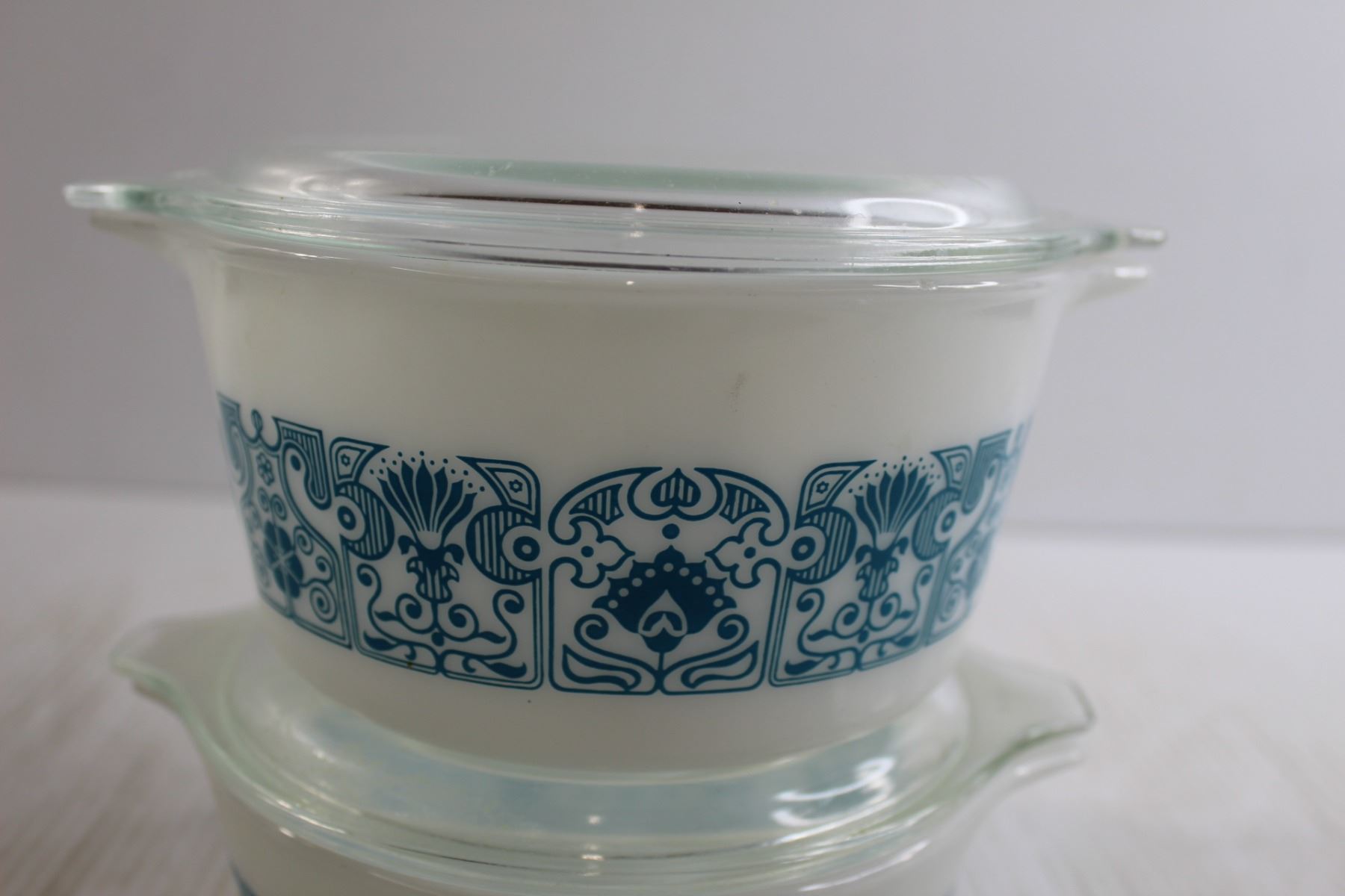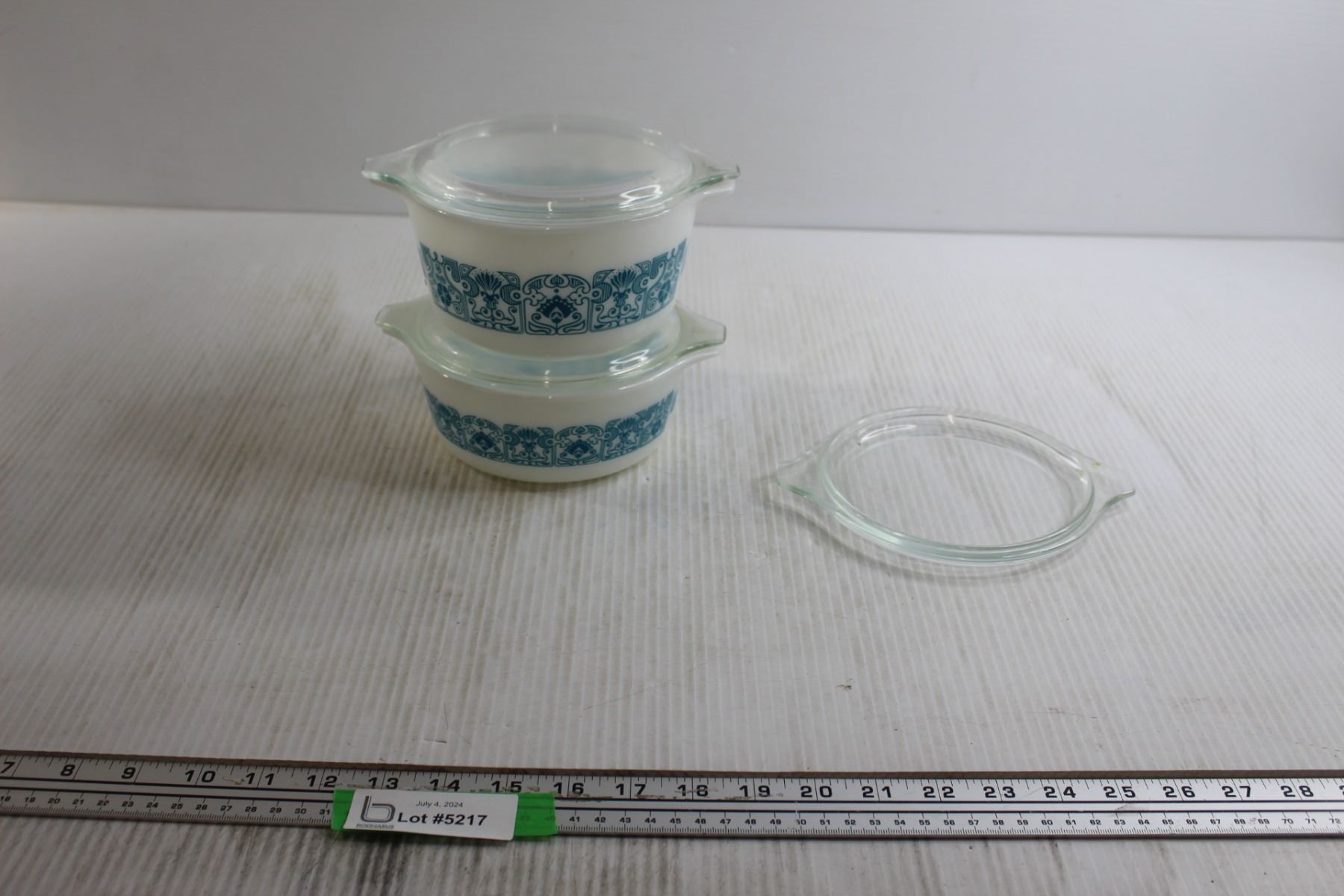 (2) Pyrex Horizon Blue Casserole Dishes with Lids + Extra Lid