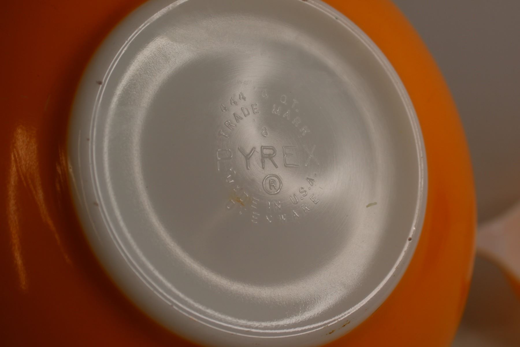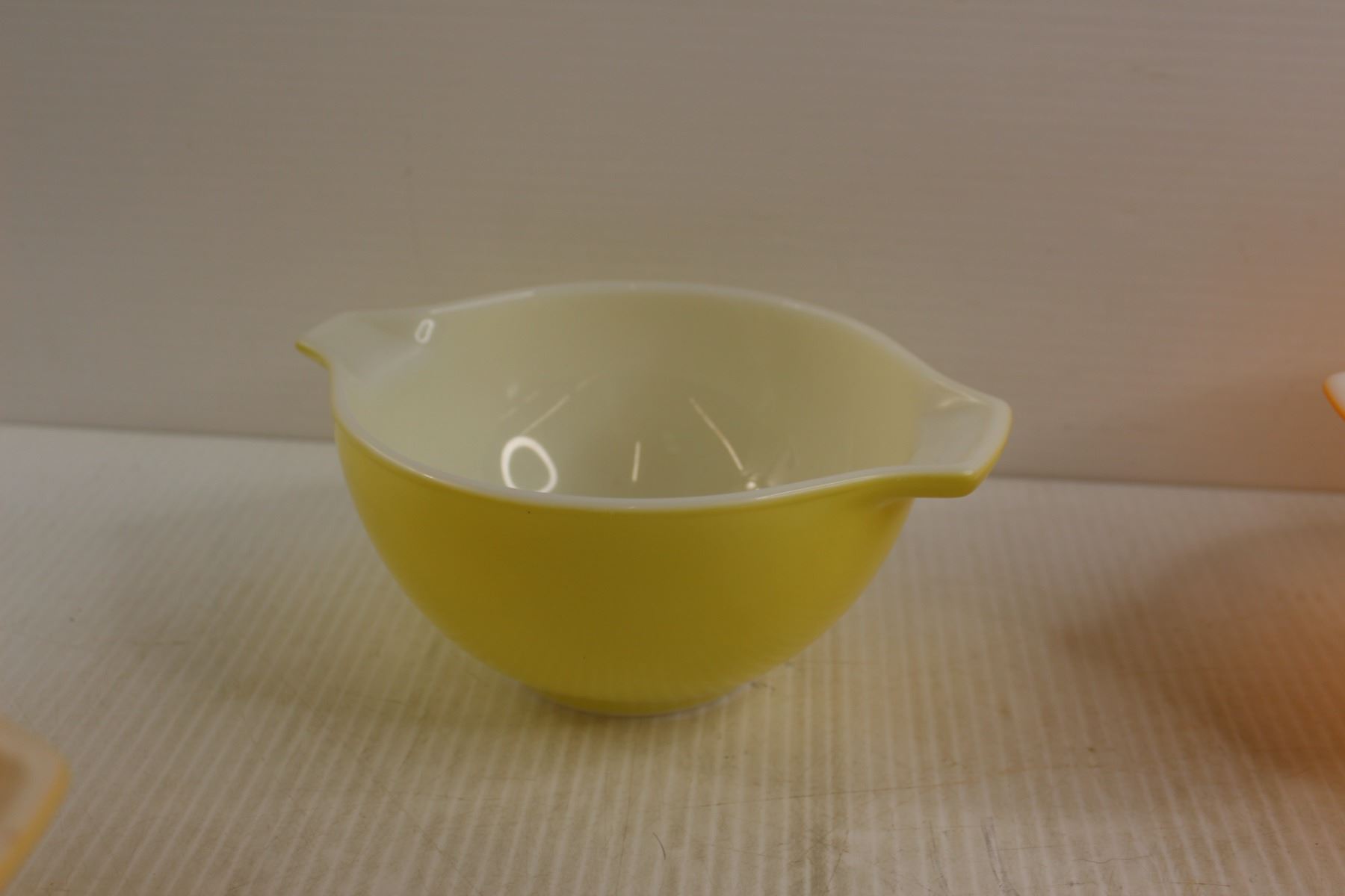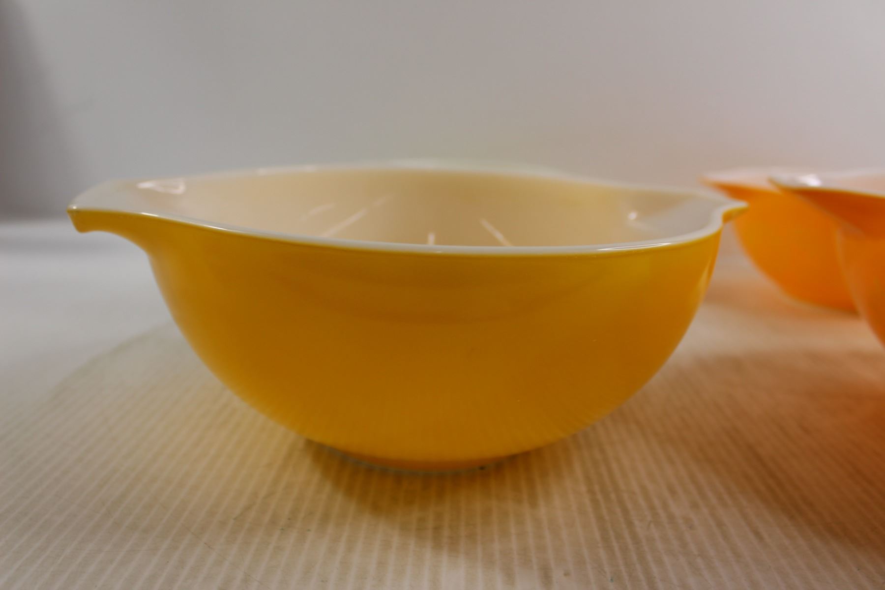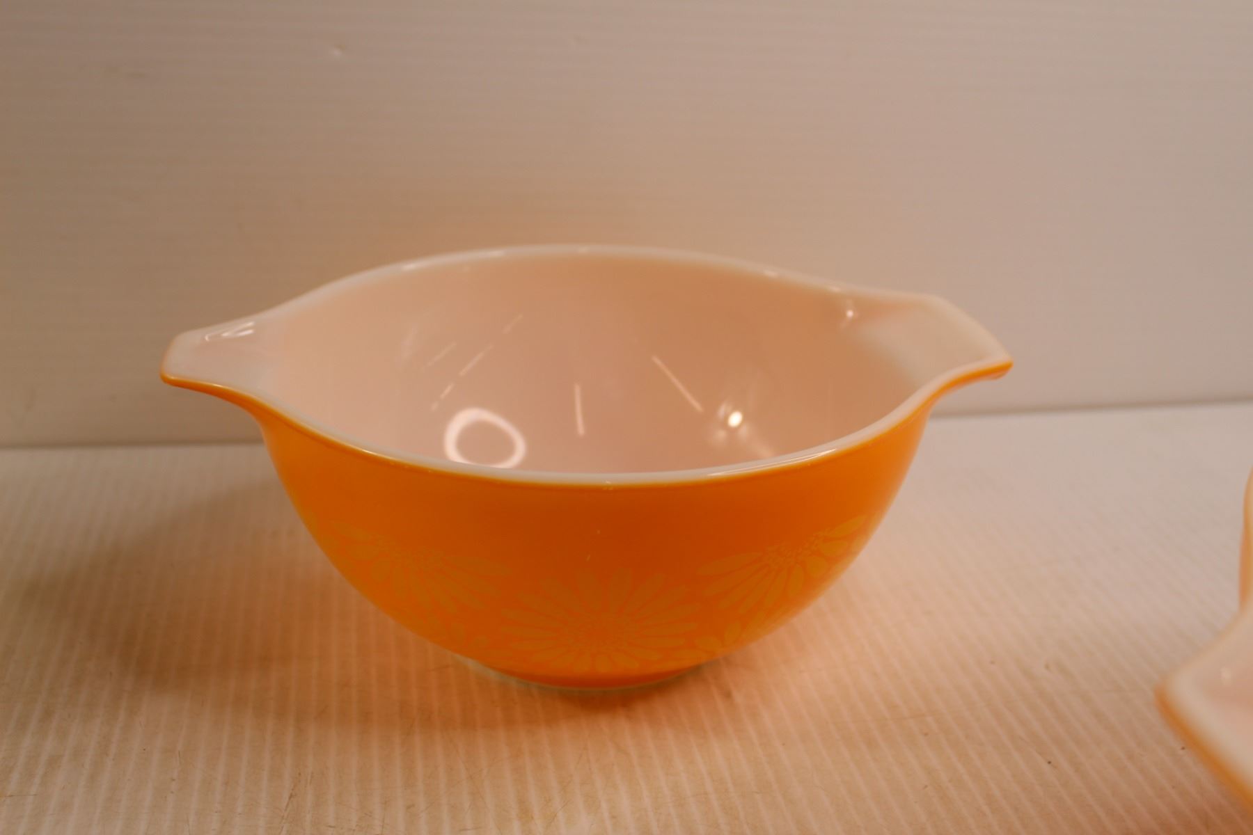 (2) Pyrex Sunflower Daisy Nesting Cinderella Mixing Bowls, (2) Yellow/Orange Pyrex Bowls