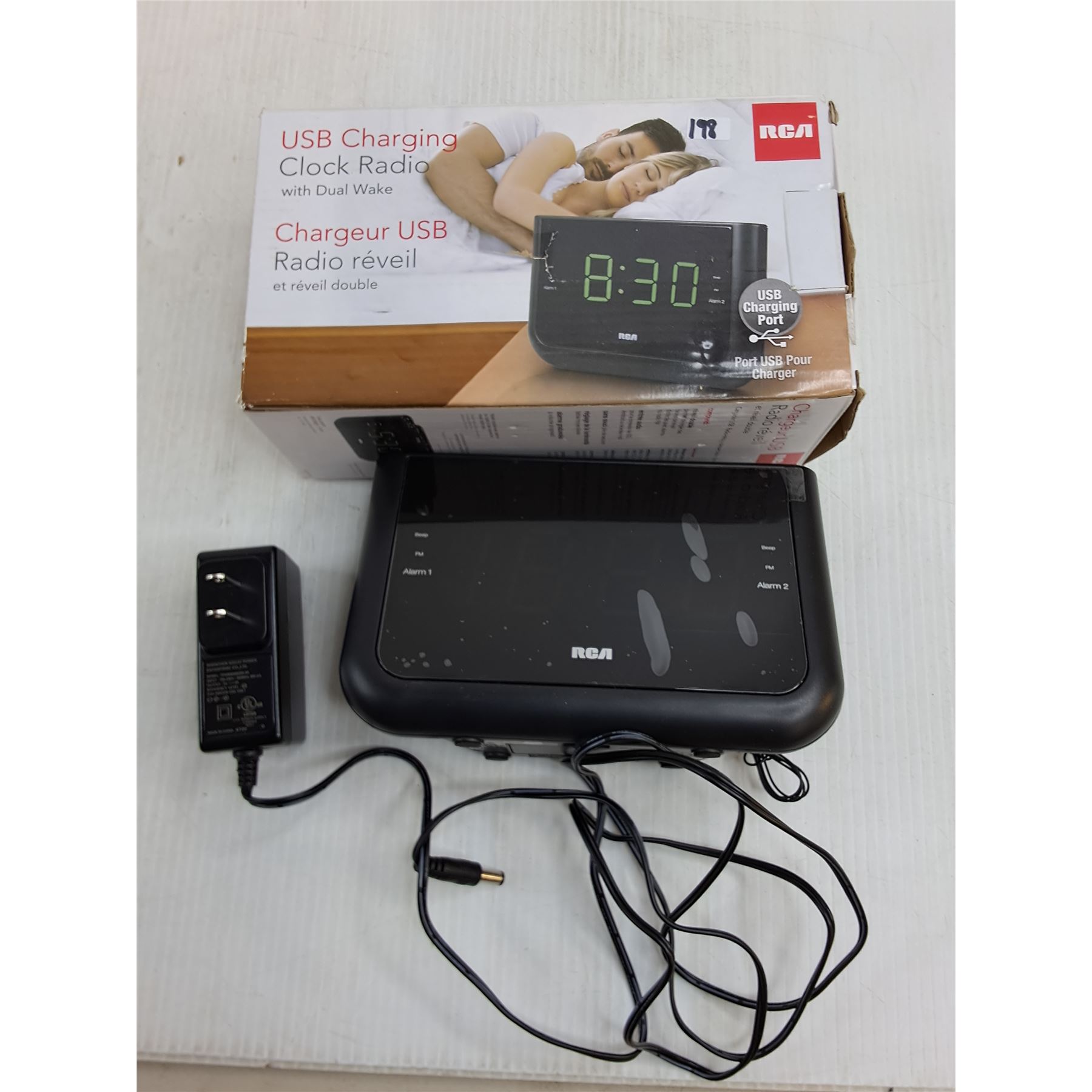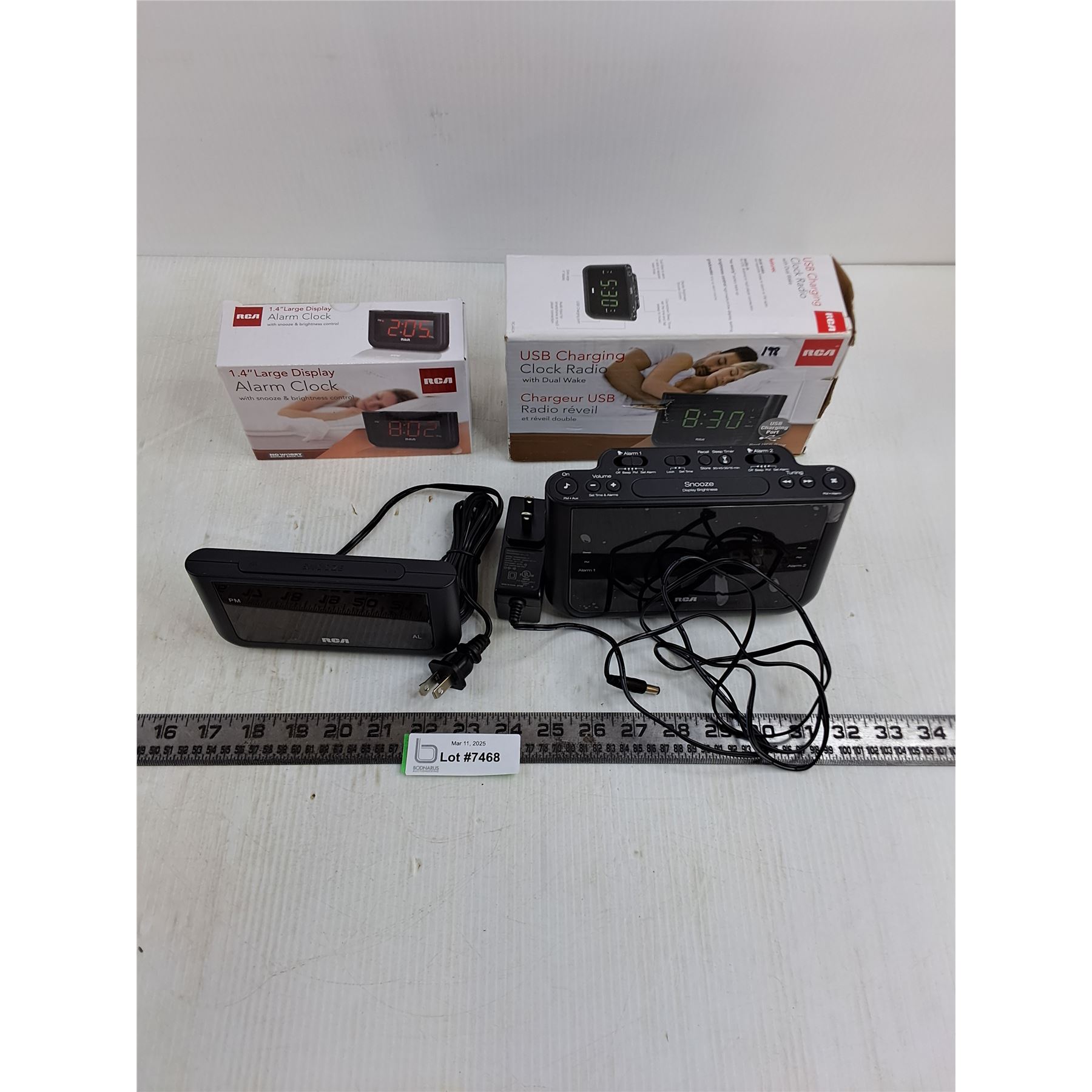 (2) RCA Digital Alarm Clocks (1.4" Large Display & USB Charging Clock Radio with Dual Wake) - Both Power On