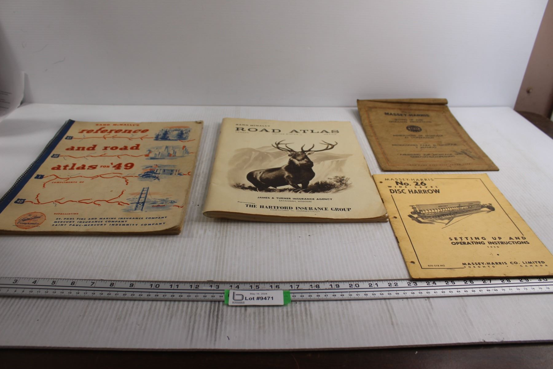 (2) Rand McNally's Road Atlases, (2) Massey-Harris Operating Instructions