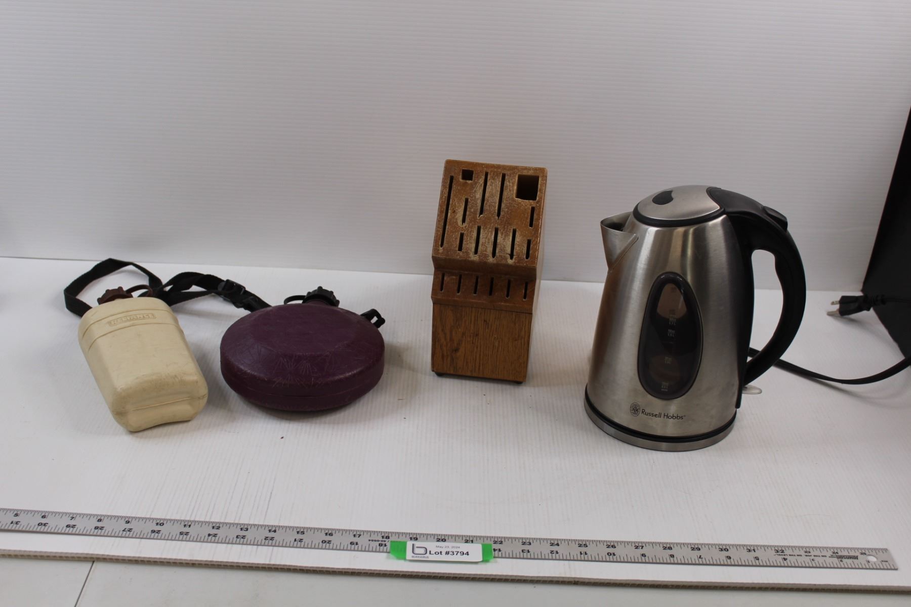 (2) Reliance Plastic Water Canteens, Russell Hobbs Cordless Electric Kettle & Empty Knife Block