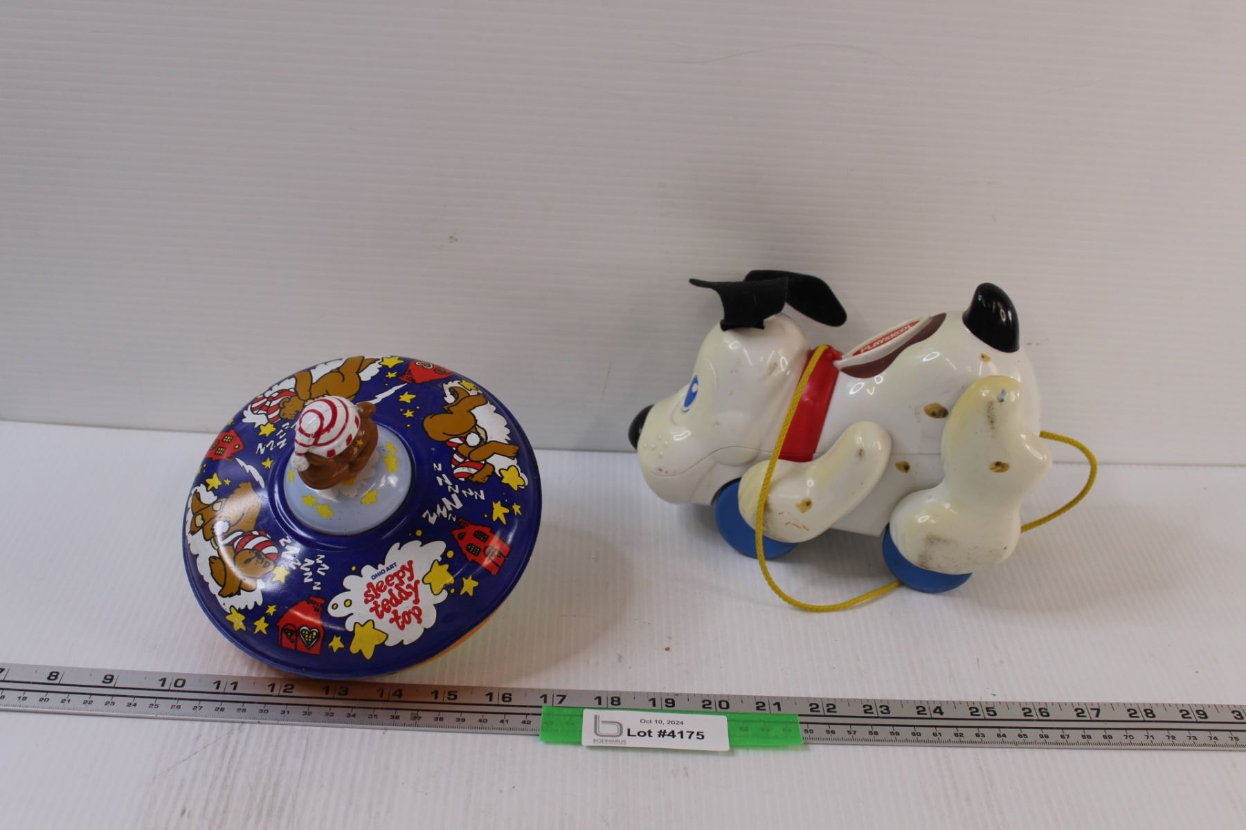 (2) Retro Children's Toys: Sleepy Teddy Top & Playskool Pull Along Puppy