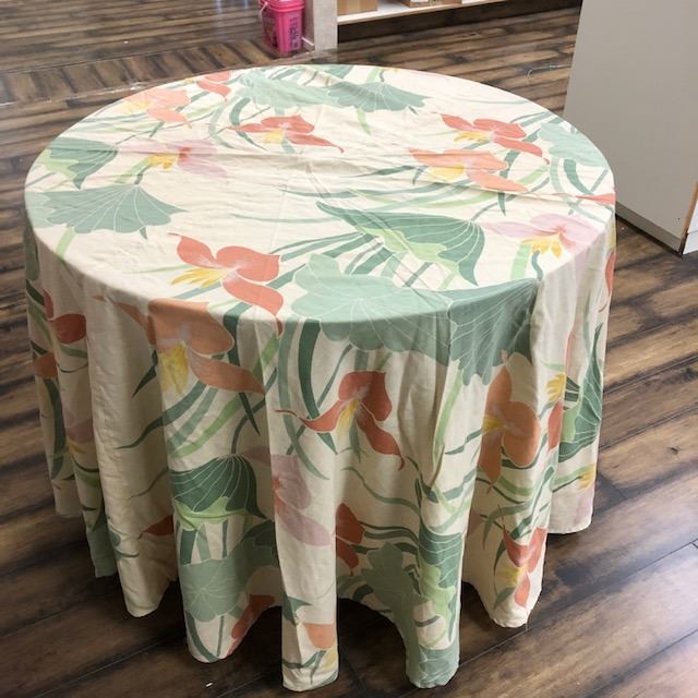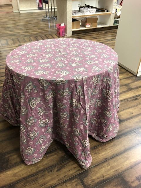 2 Round display tables with table cloths 36" diameter