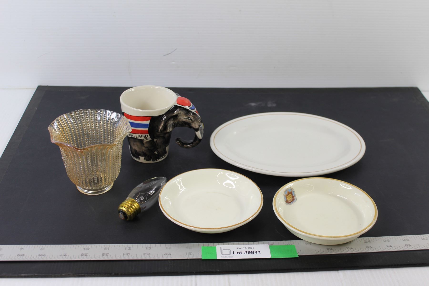 (2) Royal Doulton Trays, Thailand Mug, Light Bulb, Platter, Chimney