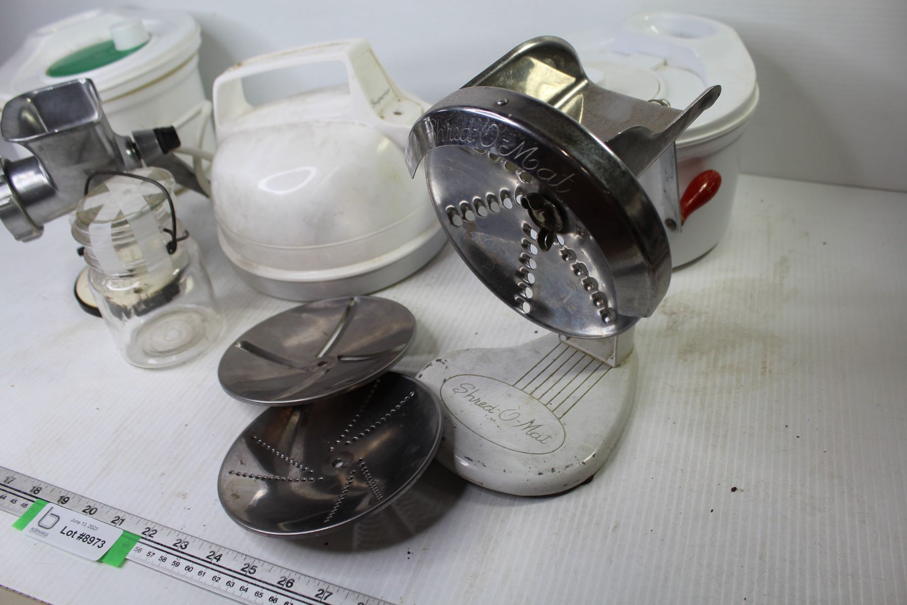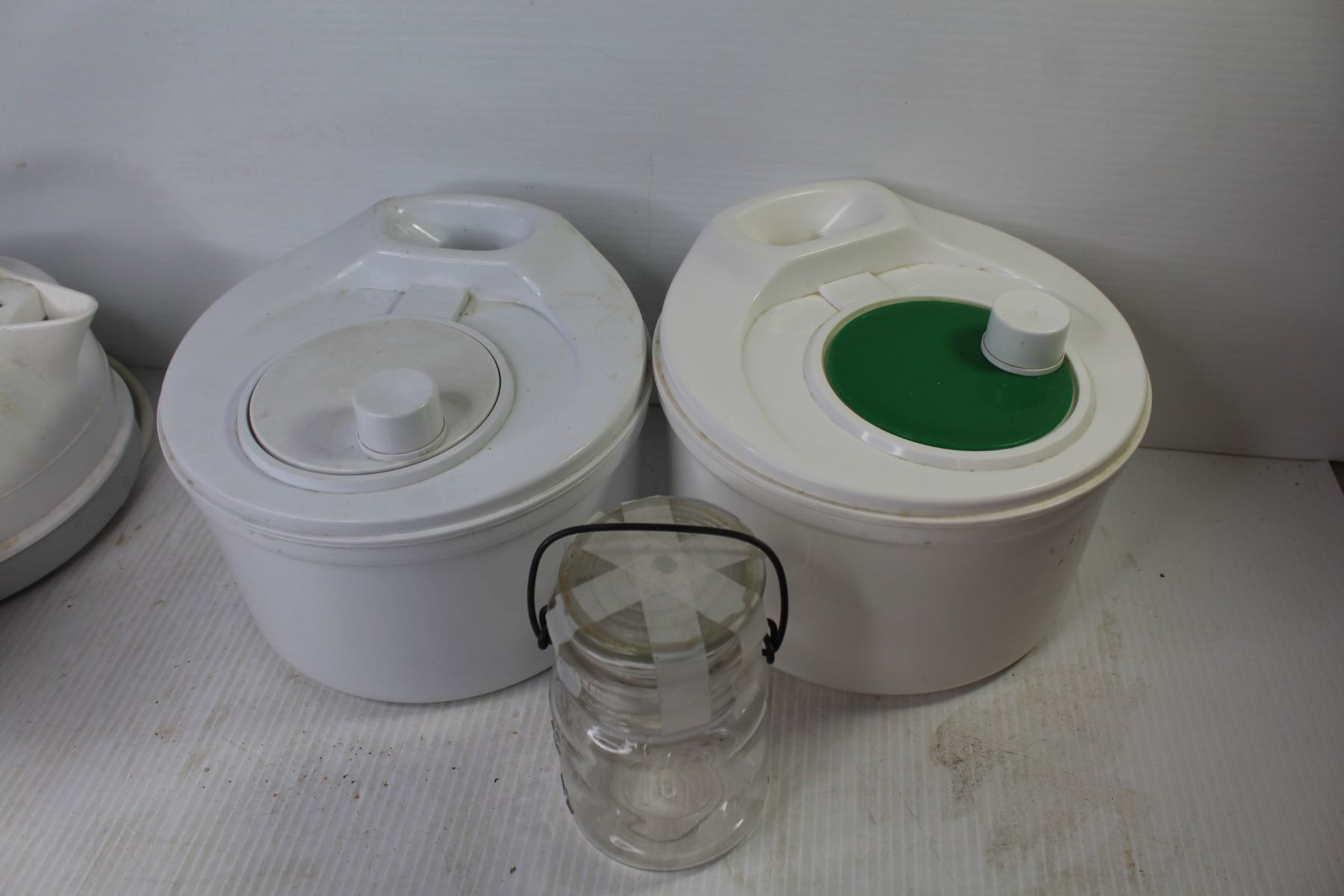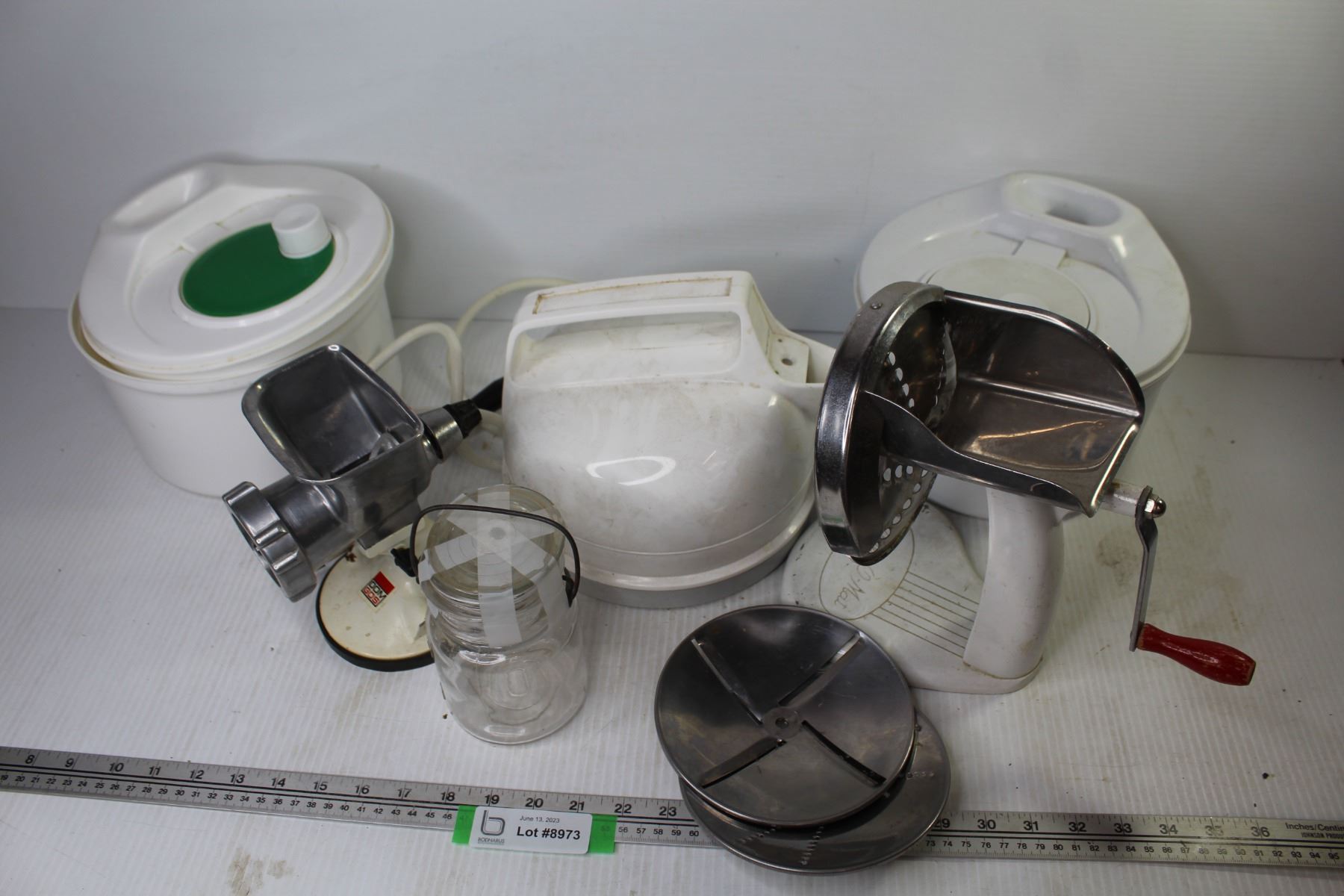 (2) Salade Spinners - Electric Kettle - Counter Top Grater - Counter Top Grinder - Sealer Jar