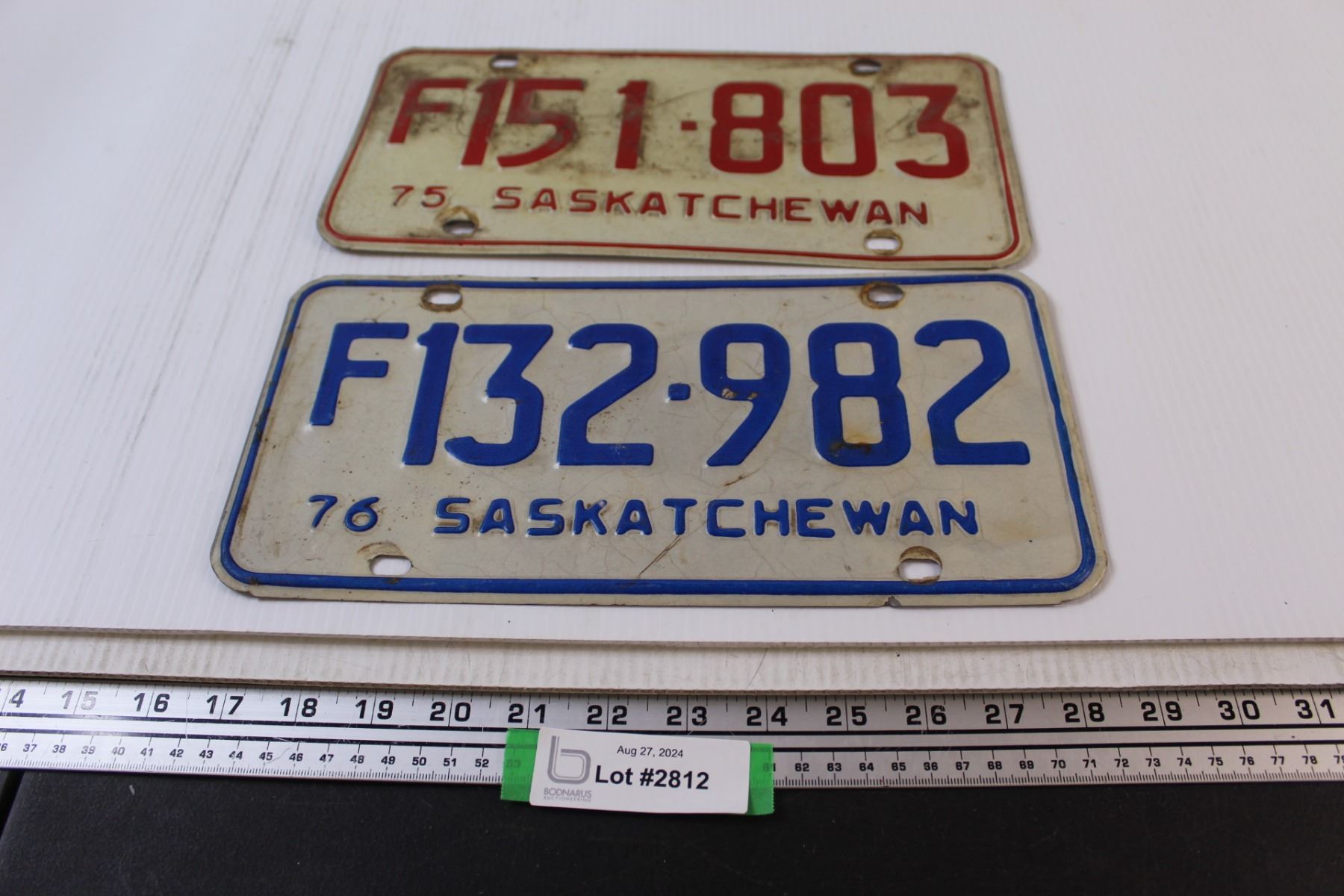 (2) Saskatchewan Farm License Plates - 1975, 1976
