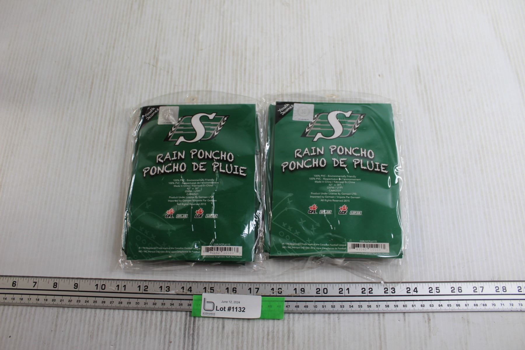 (2)Saskatchewan Roughriders Rain Poncho - Size Youth