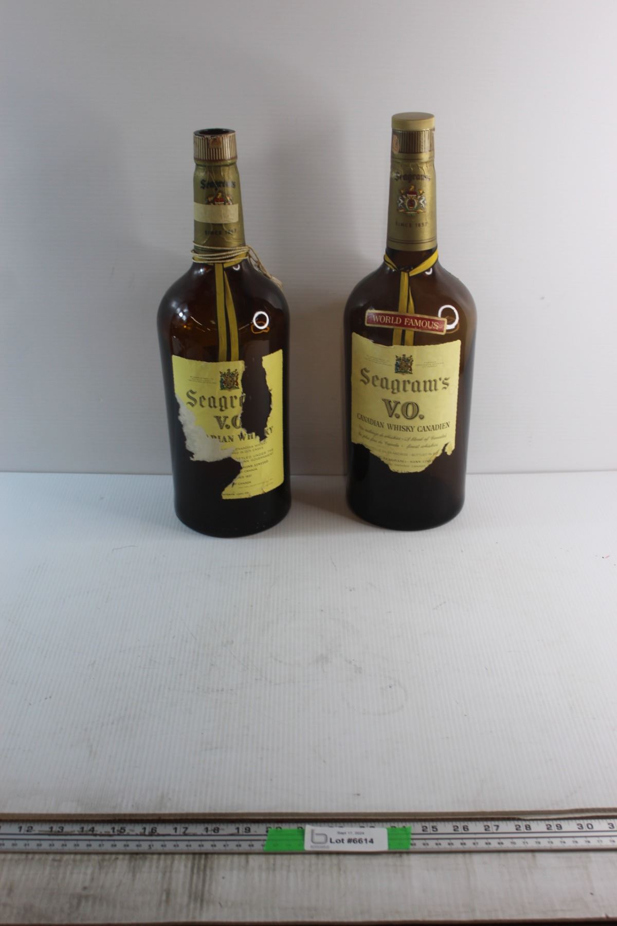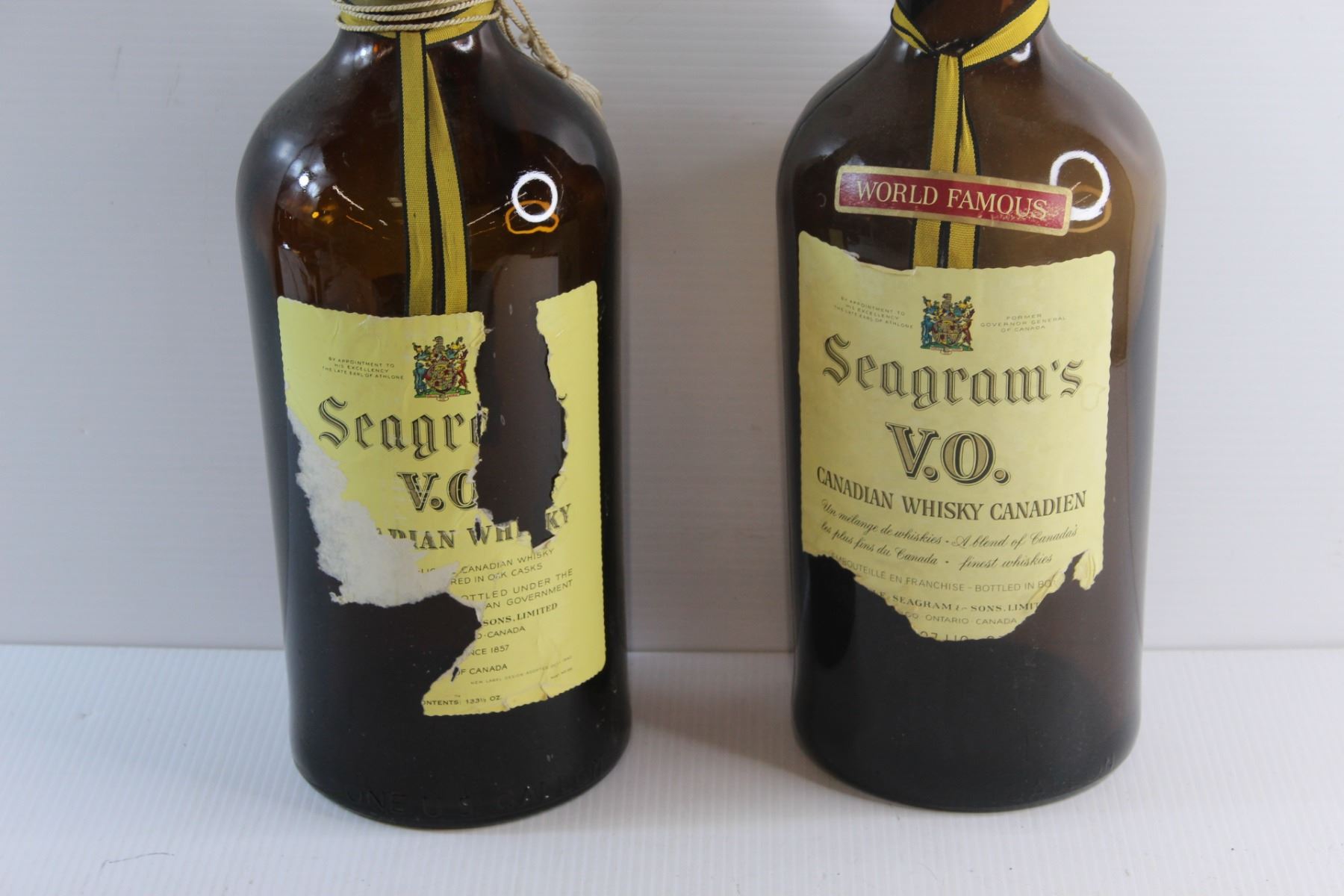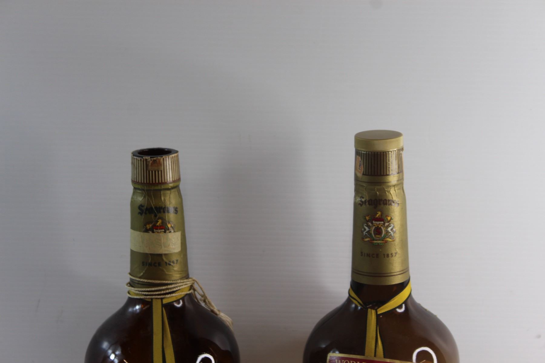 (2) Seagram V.O. Texas Mickey Liquor Bottles