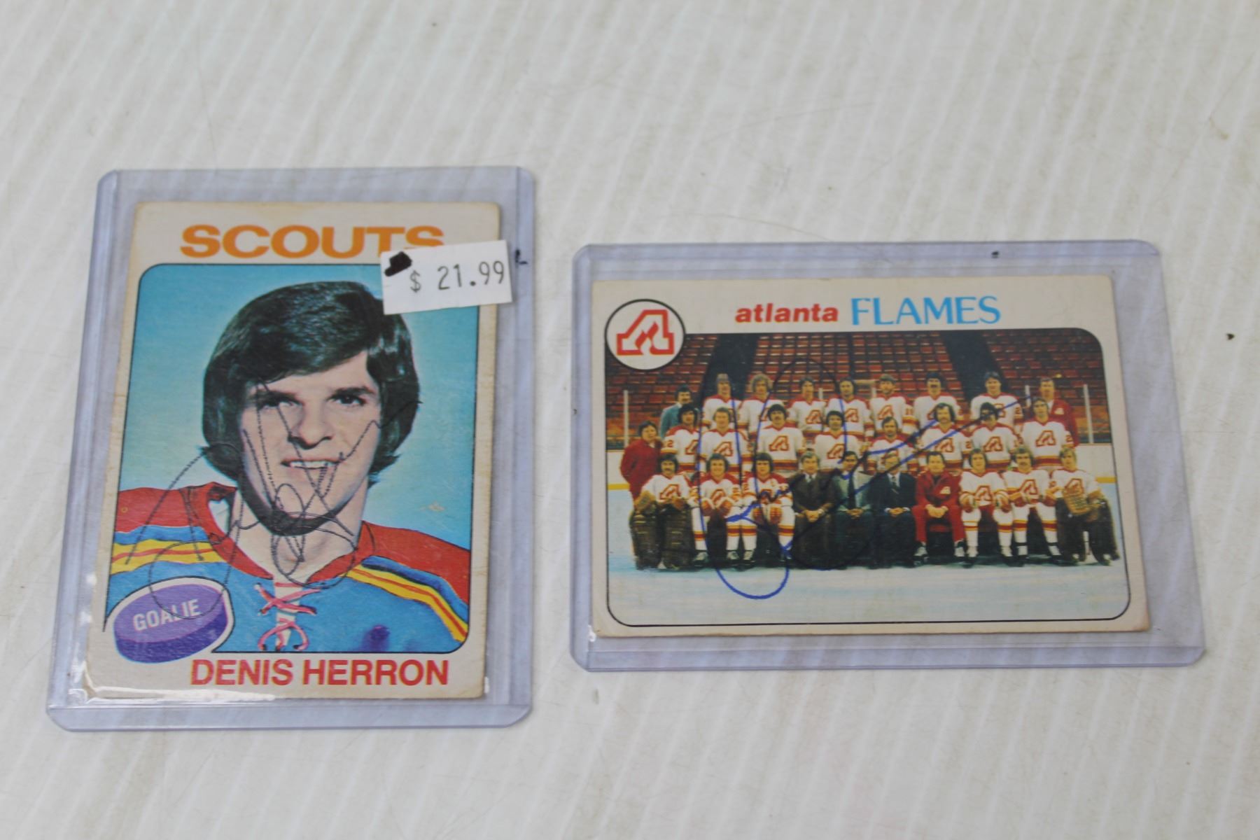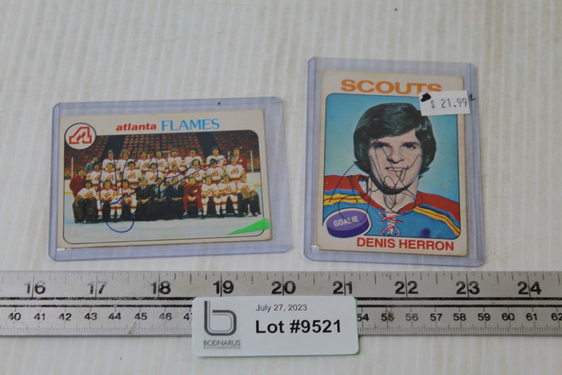 (2) Signed Hockey Cards - Denis Herron Scouts -Atlanta Flames Vakona's Signature