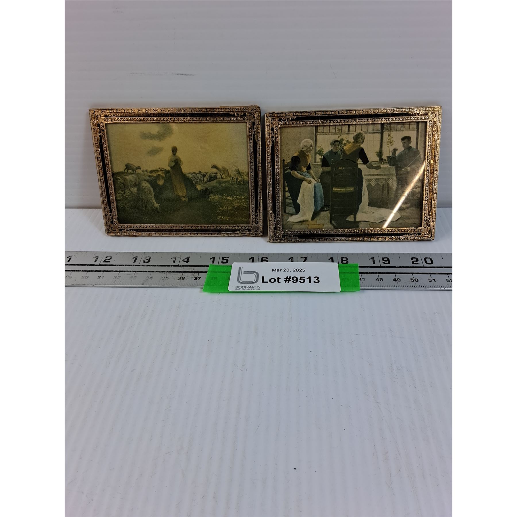 2 Small Antique Pictures. 1 by JeanFrancisMillet 1871 called "Keeper of the HEard". 1 by Walter Macewan called"Judgement of Paris.