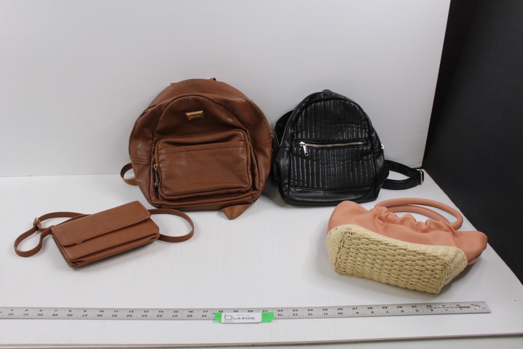 (2) Small Back Packs (Brown Calvin Klein, Black Wild Fable), A New Day Hand Bag & Madison West Purse