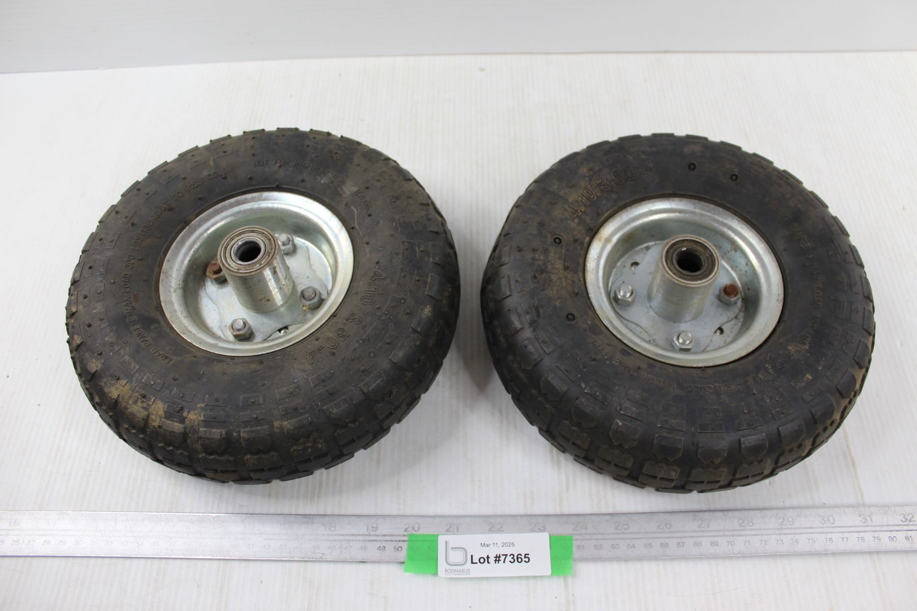 (2) Small Wheels Both, 4.10/ 3.50- 4.- Both As Is, Might Hold Air