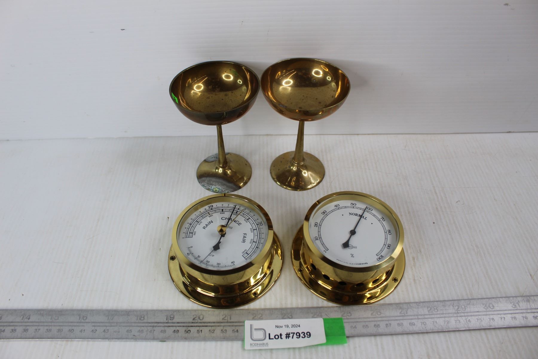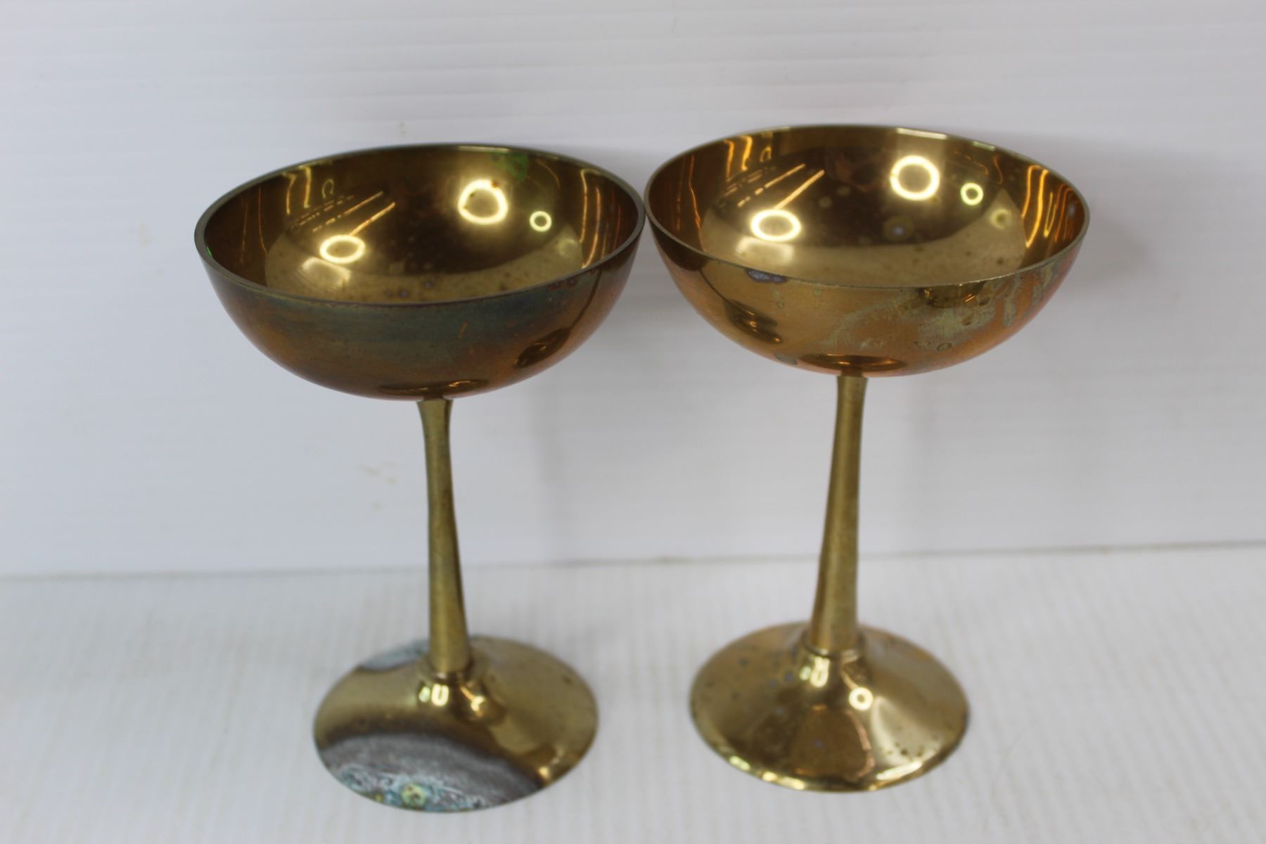 (2) Solid Brass Goblets w/ (2) Brass Gauges