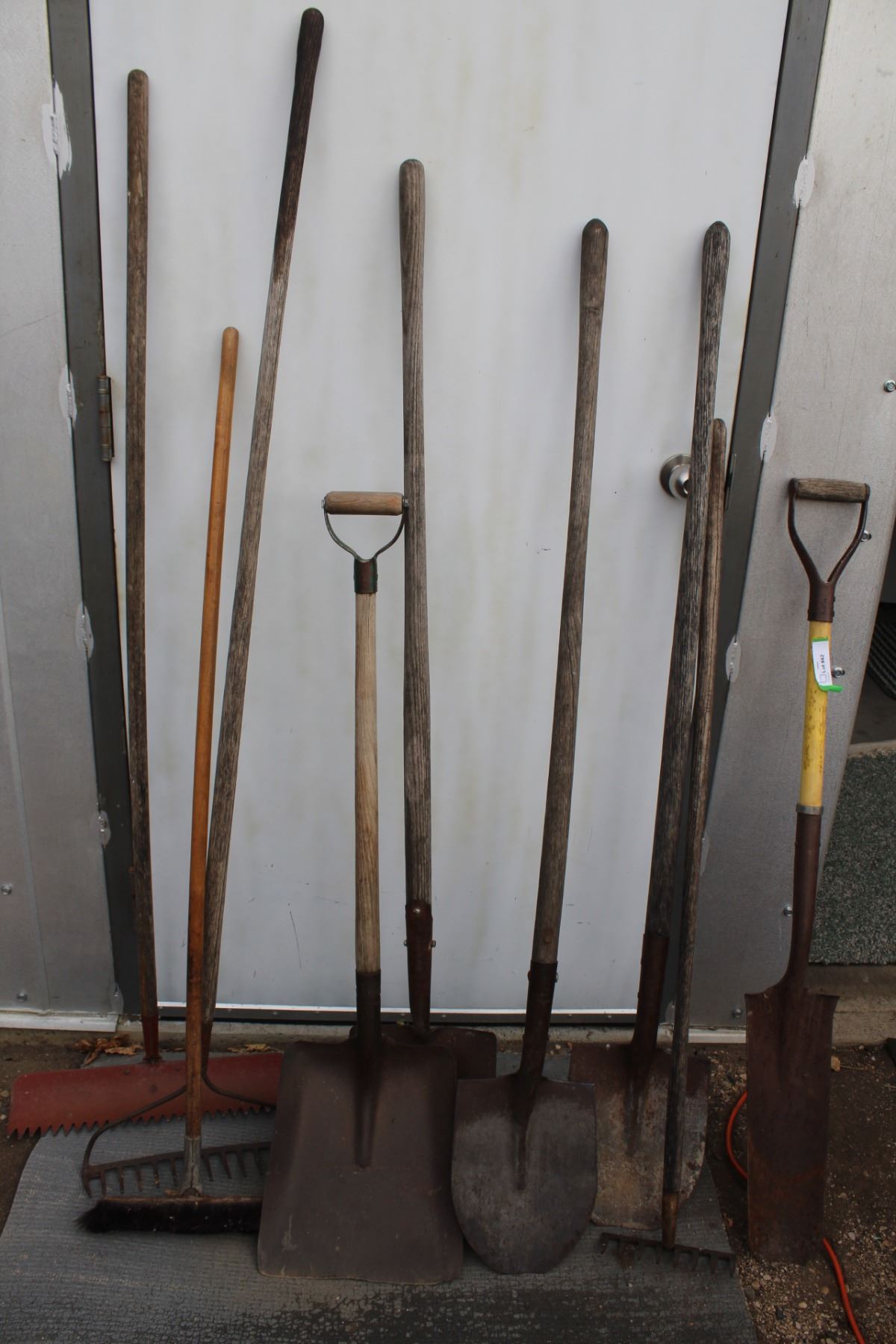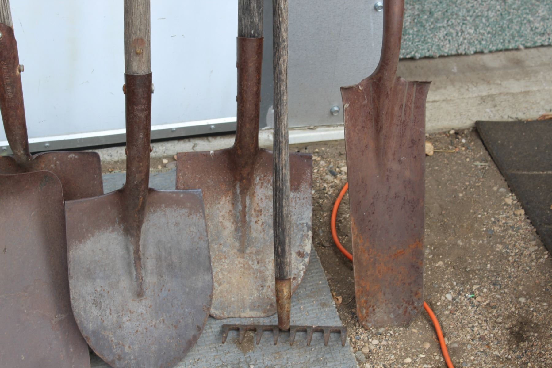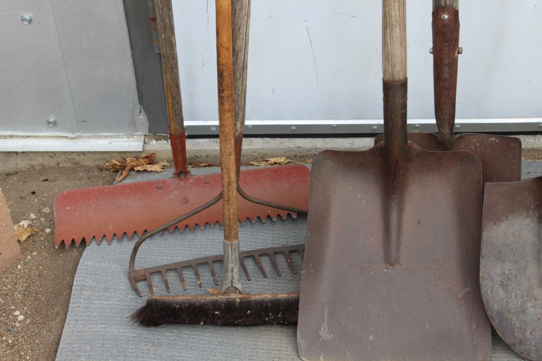 (2) Spades, (2) Rakes, Planting/Trenching Shade, Landscaping Rake, Broom, Square Mouth Shovel