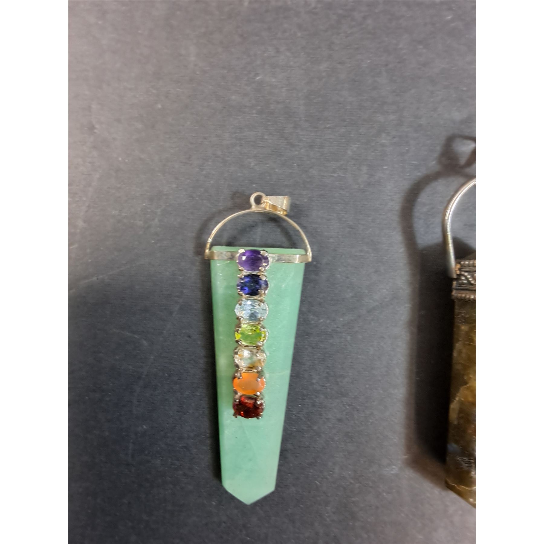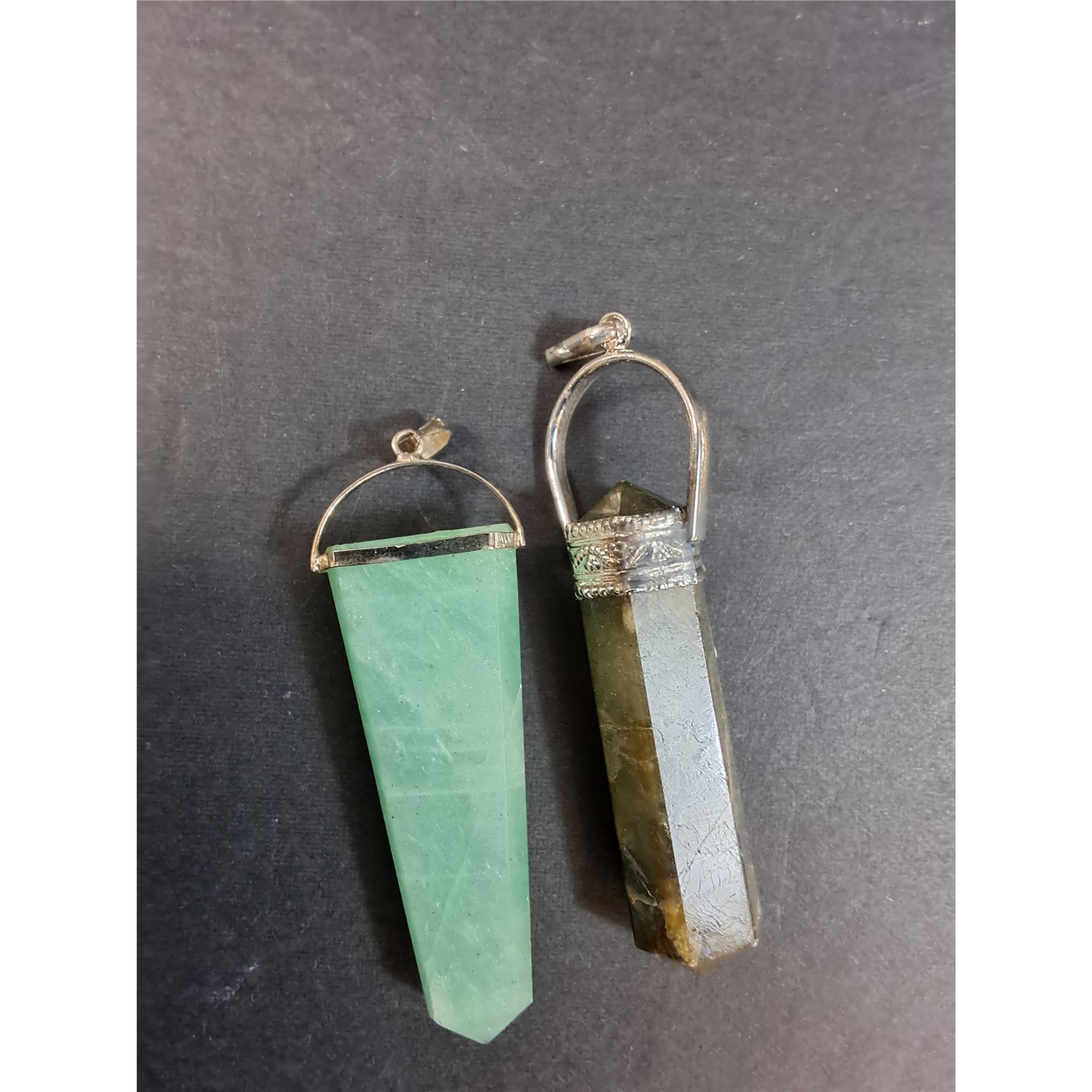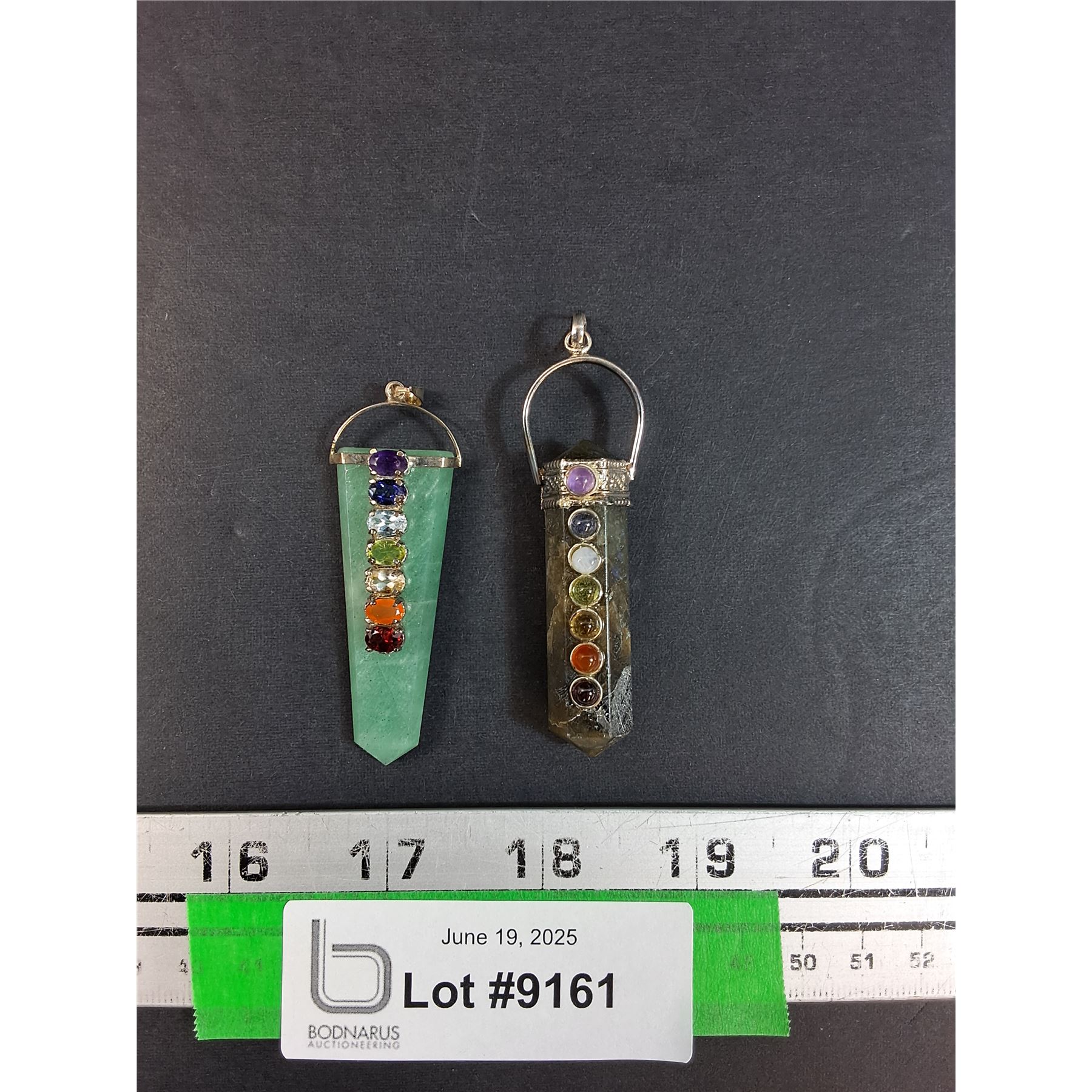 (2) Stone Pendants - (1) Aventurine Pendant & (1) Labrodorite Stone w/Colored Gems Stones