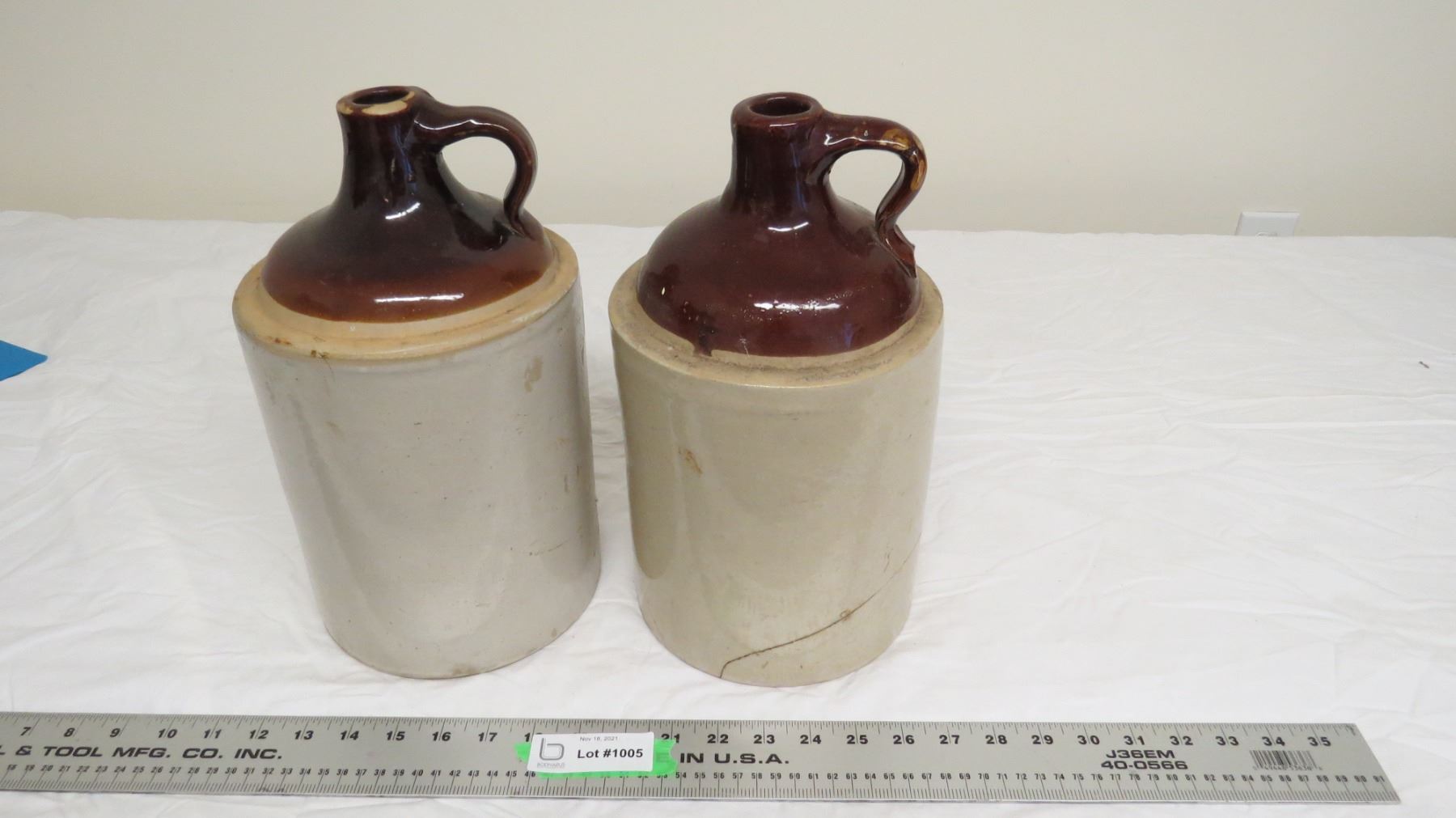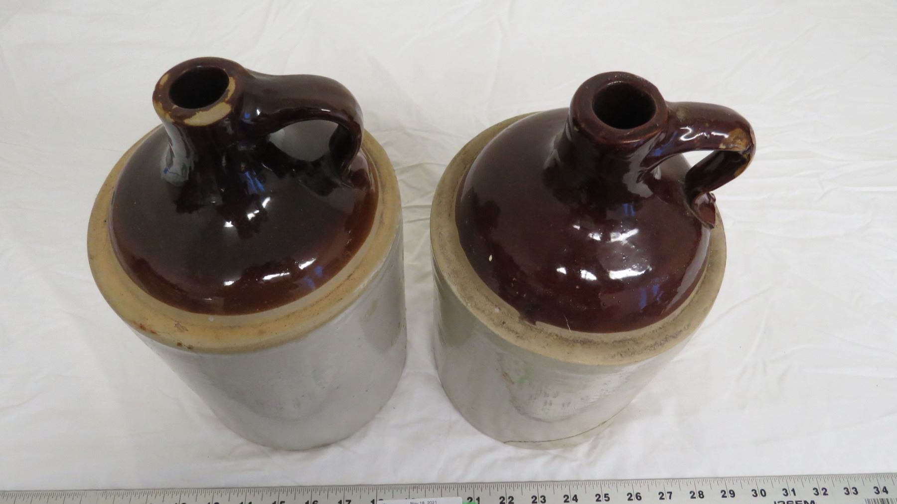 (2) Stoneware Jugs (have hairline cracks)