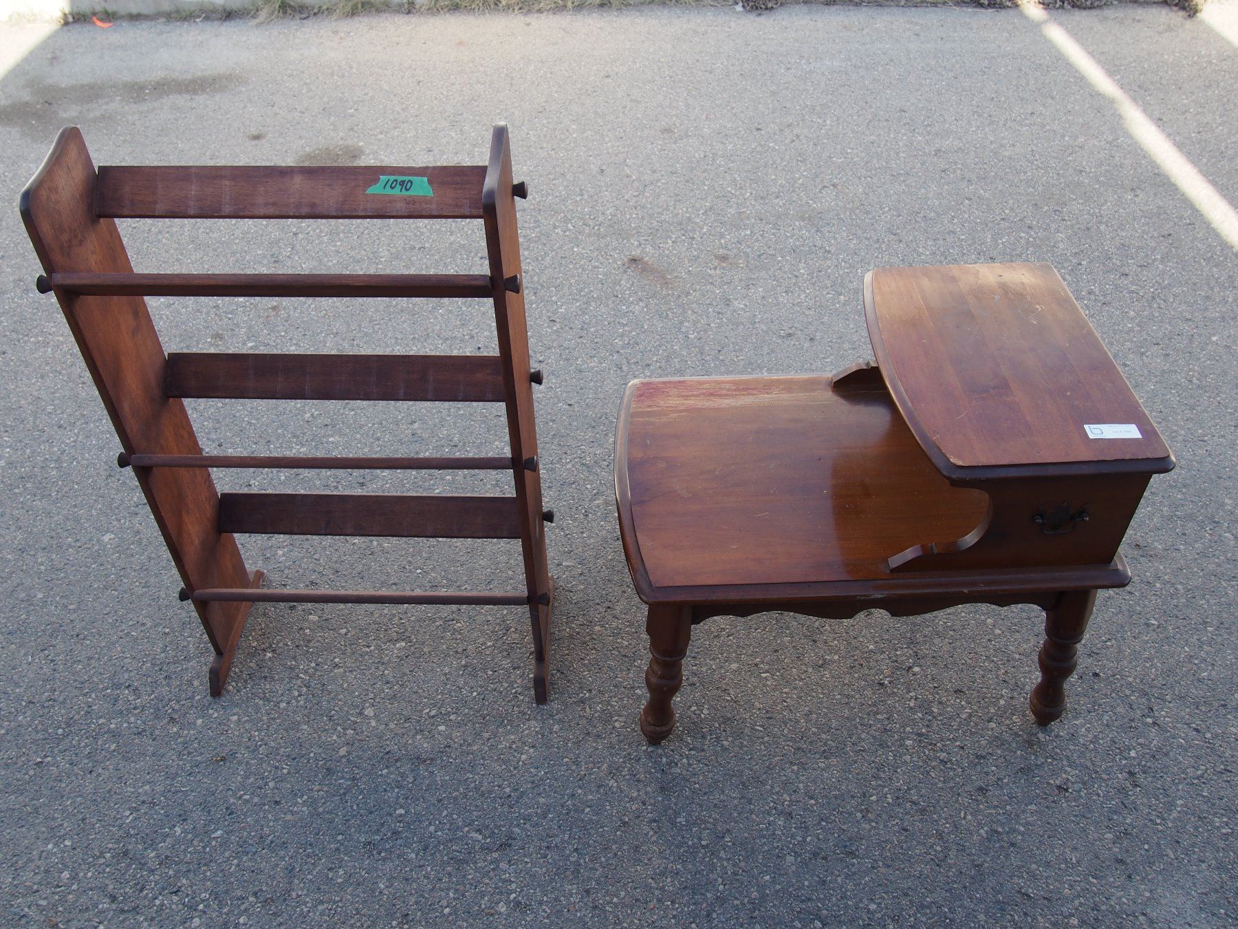 2 Tier End Table and Wooden Rack: 22" Wide, 38" Tall