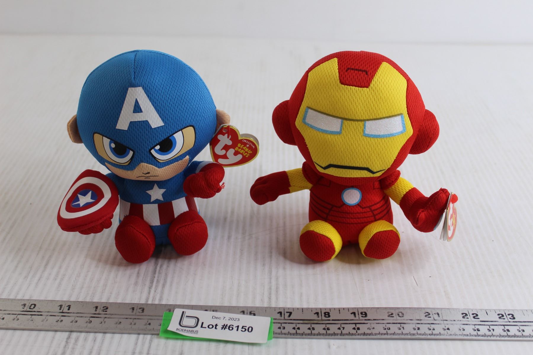 (2) Ty Beanie Babies - Captain America, Iron Man