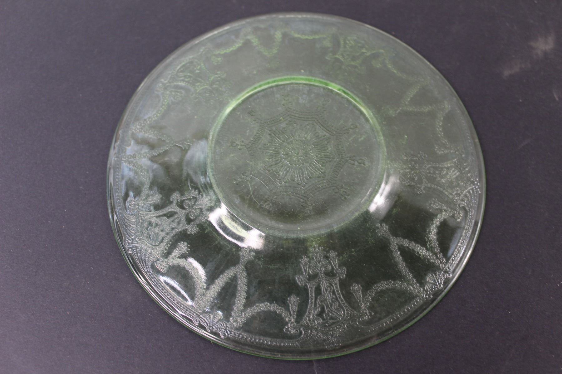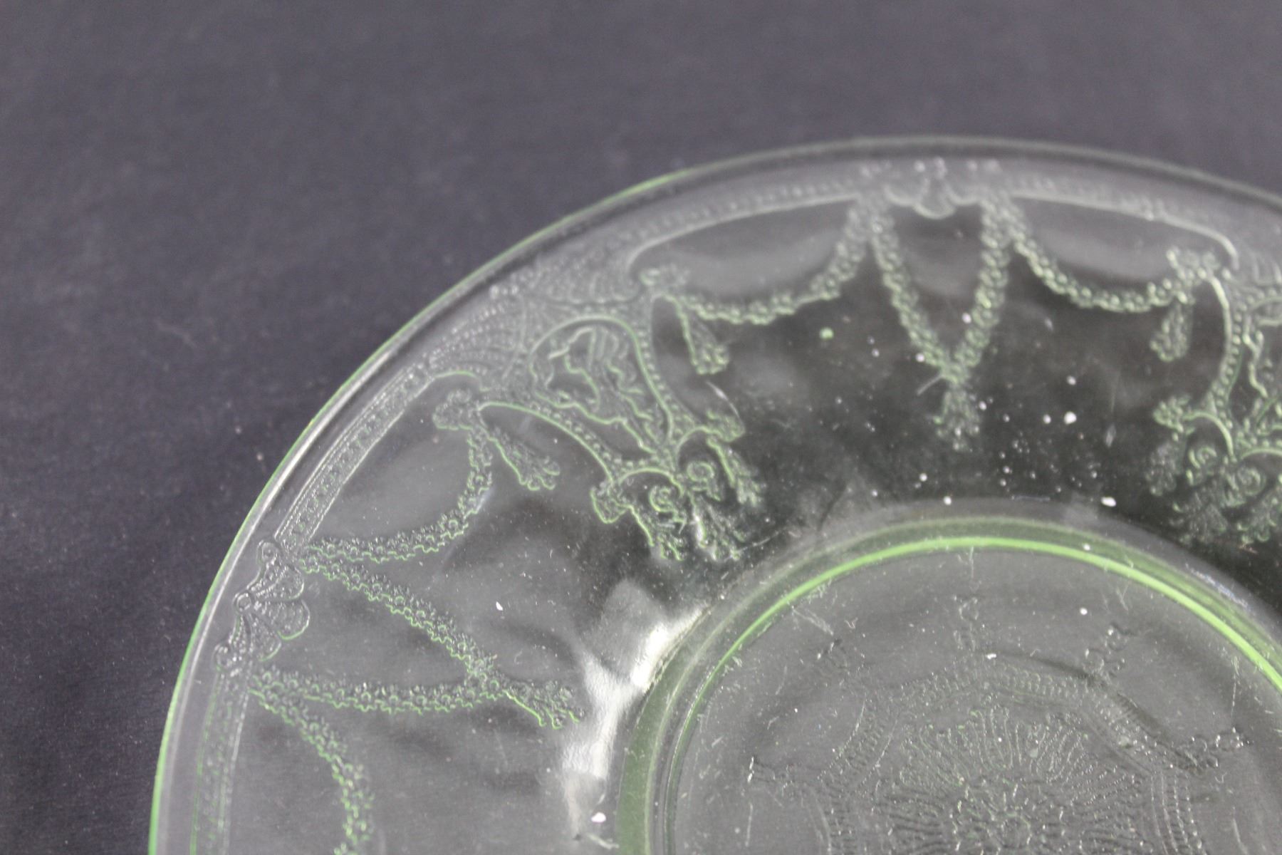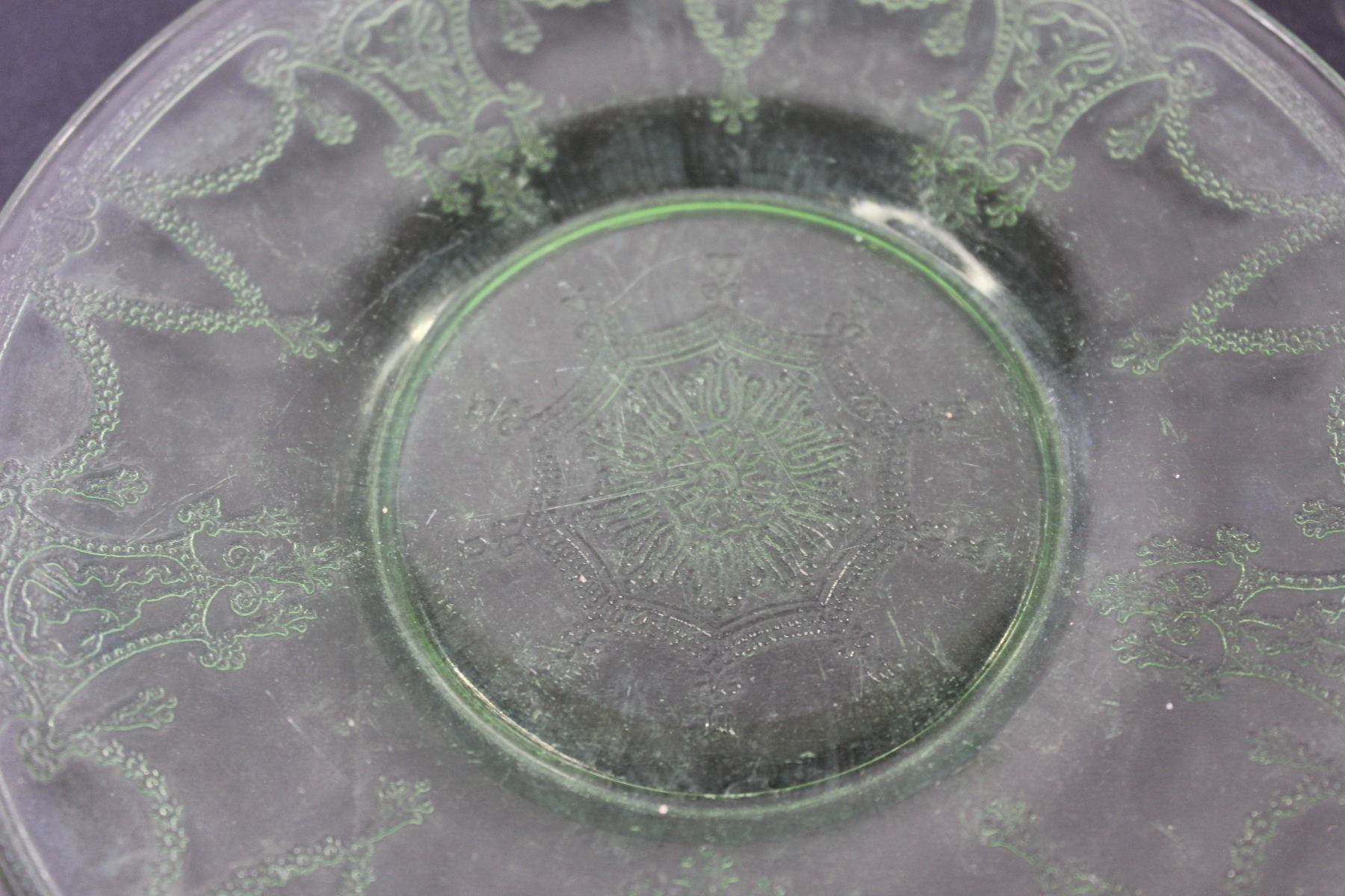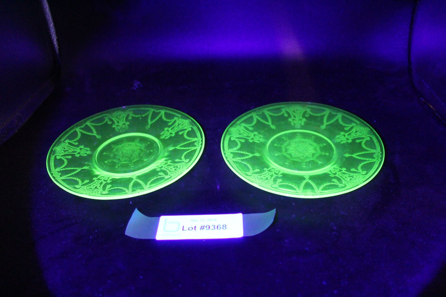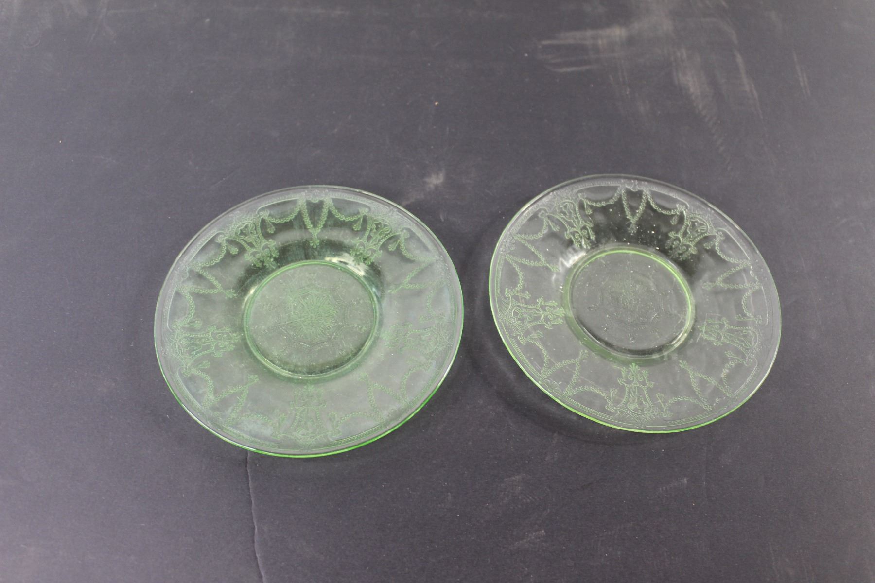 (2) Uranium Cameo Ballerina Glass Saucers