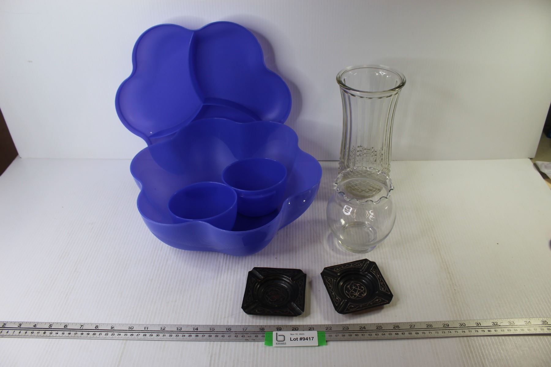 (2) Vases - (2) Ashtrays - Plastic Container Bowl w/Lid - Small Bowls