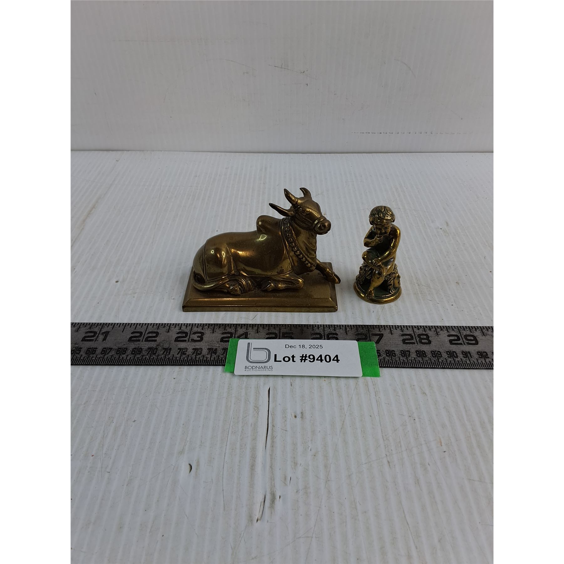 (2) Vintage Brass Ornaments (Bull & Flutist)