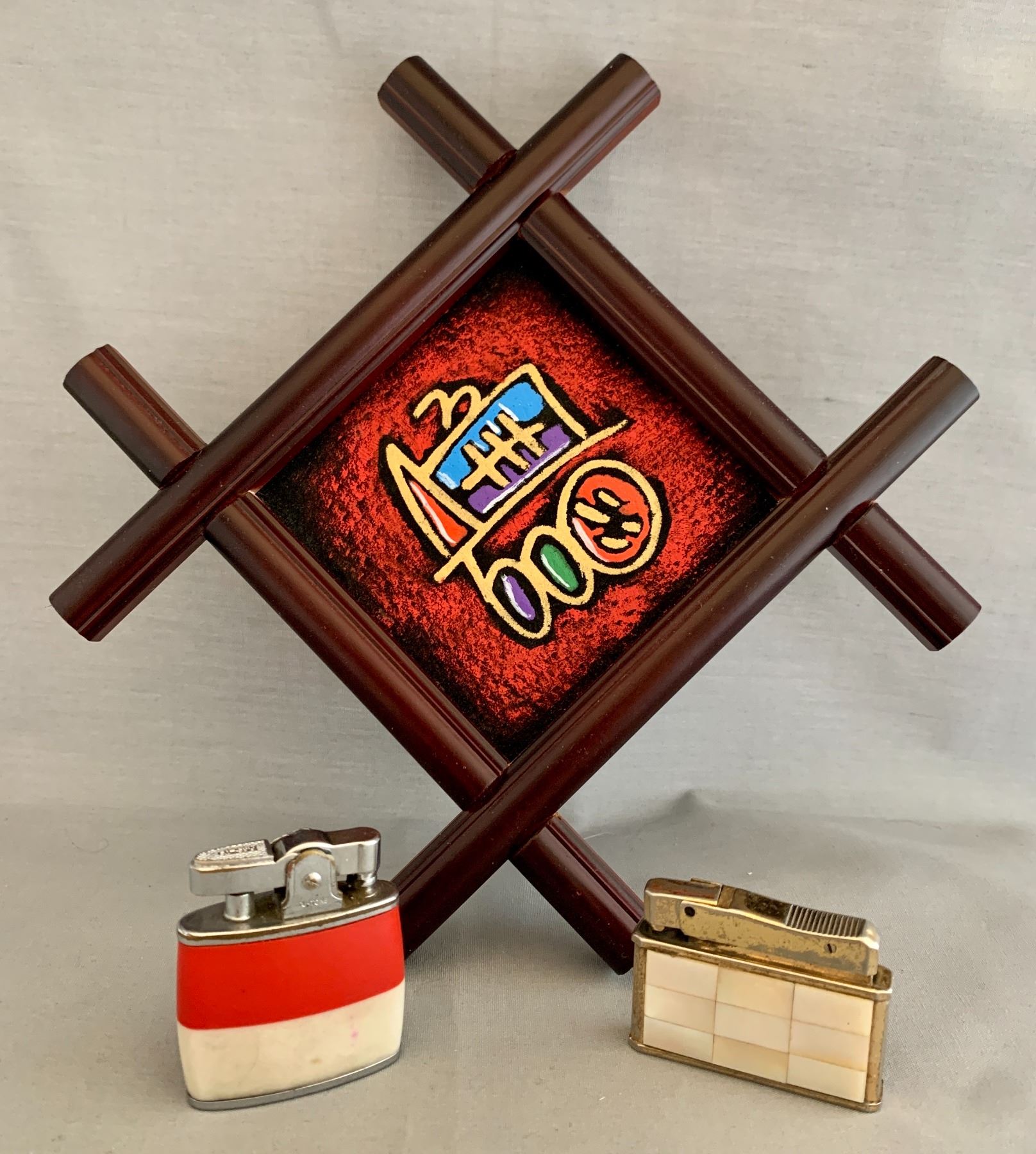(2) Vintage Butane Lighters, Asian Wall Sign