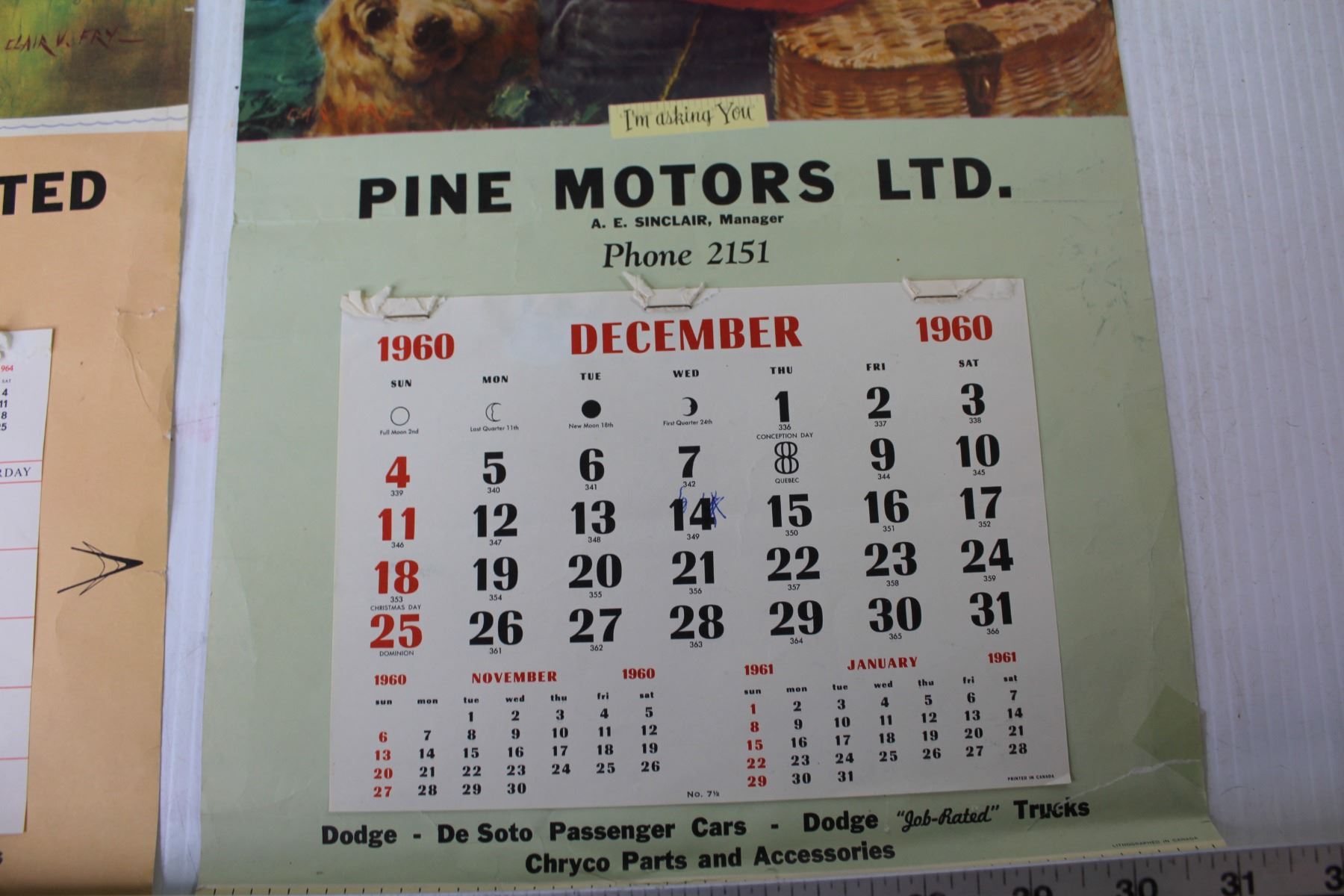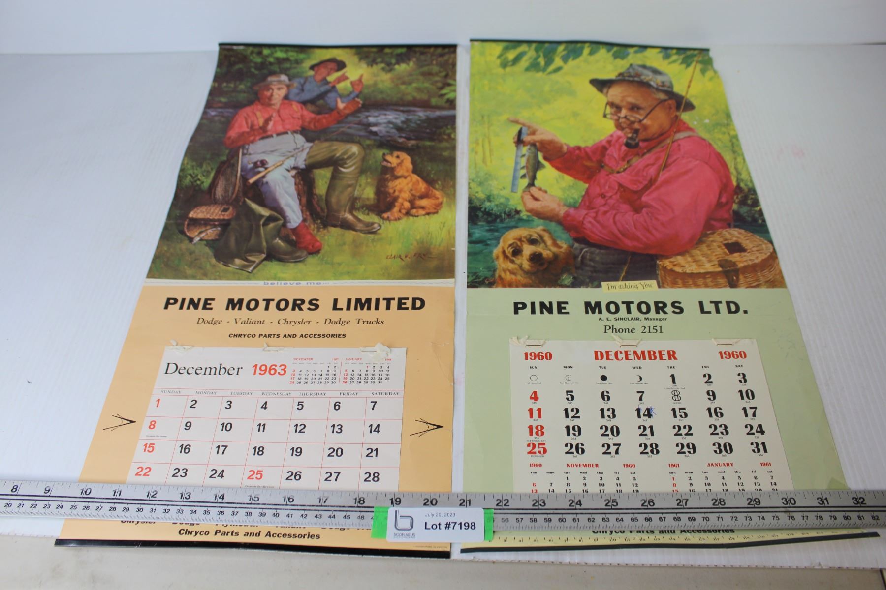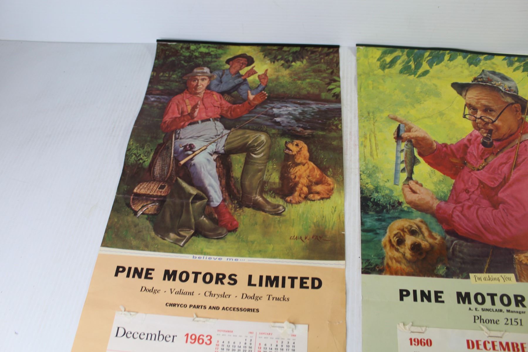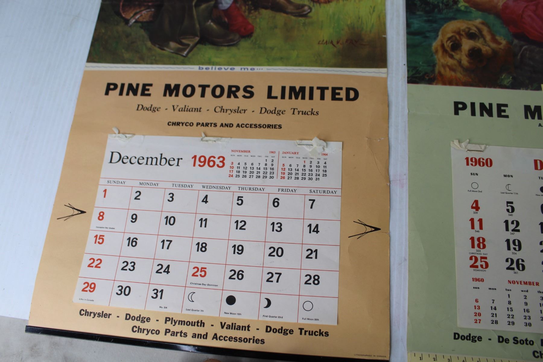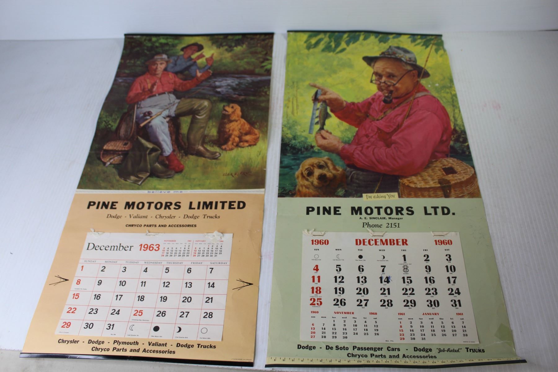 (2) Vintage Calendars - Pine Motors LTD -1960 - 1963