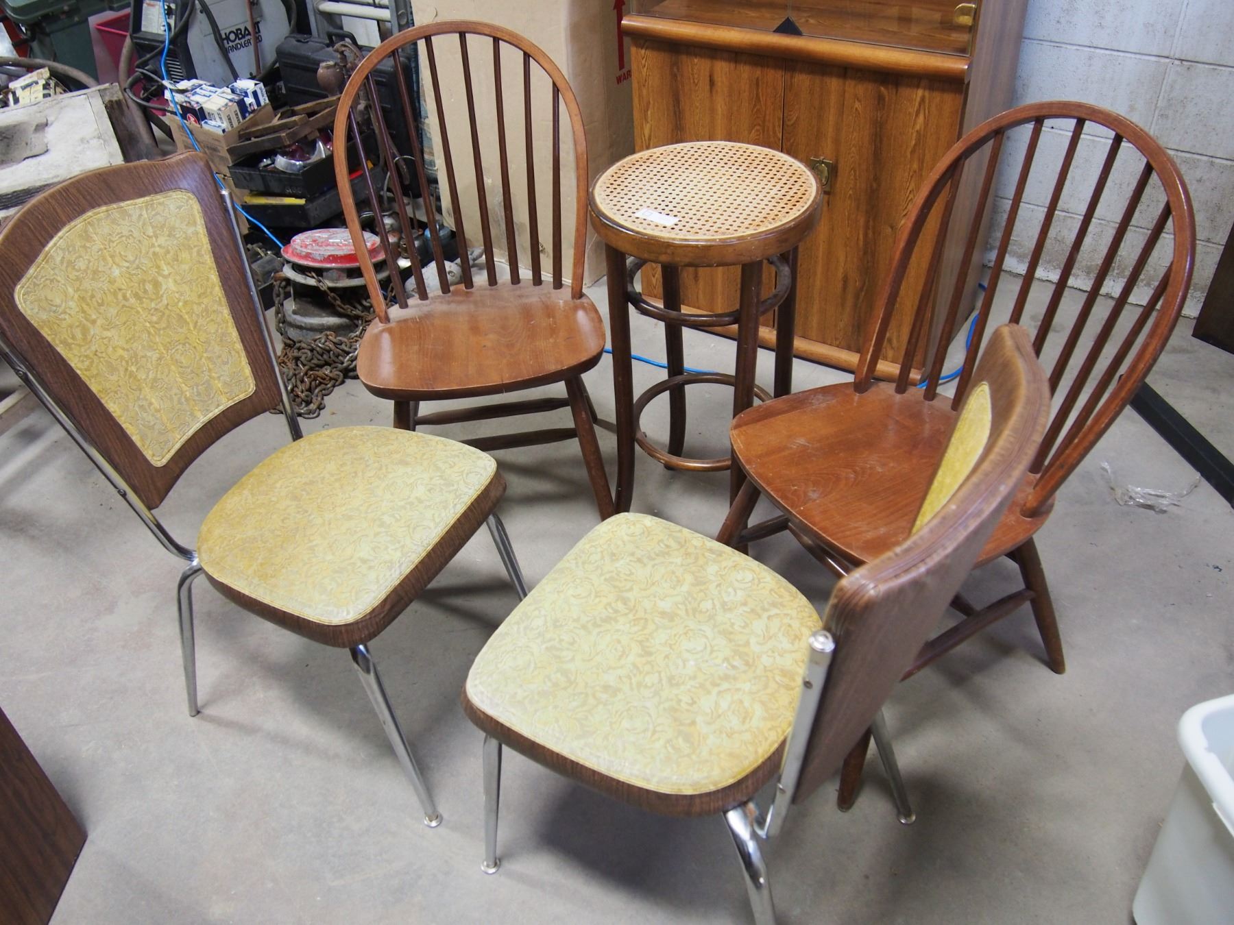 2 Vintage Chairs, 1 Stool, 2 Wooden Chairs (5 pieces total)