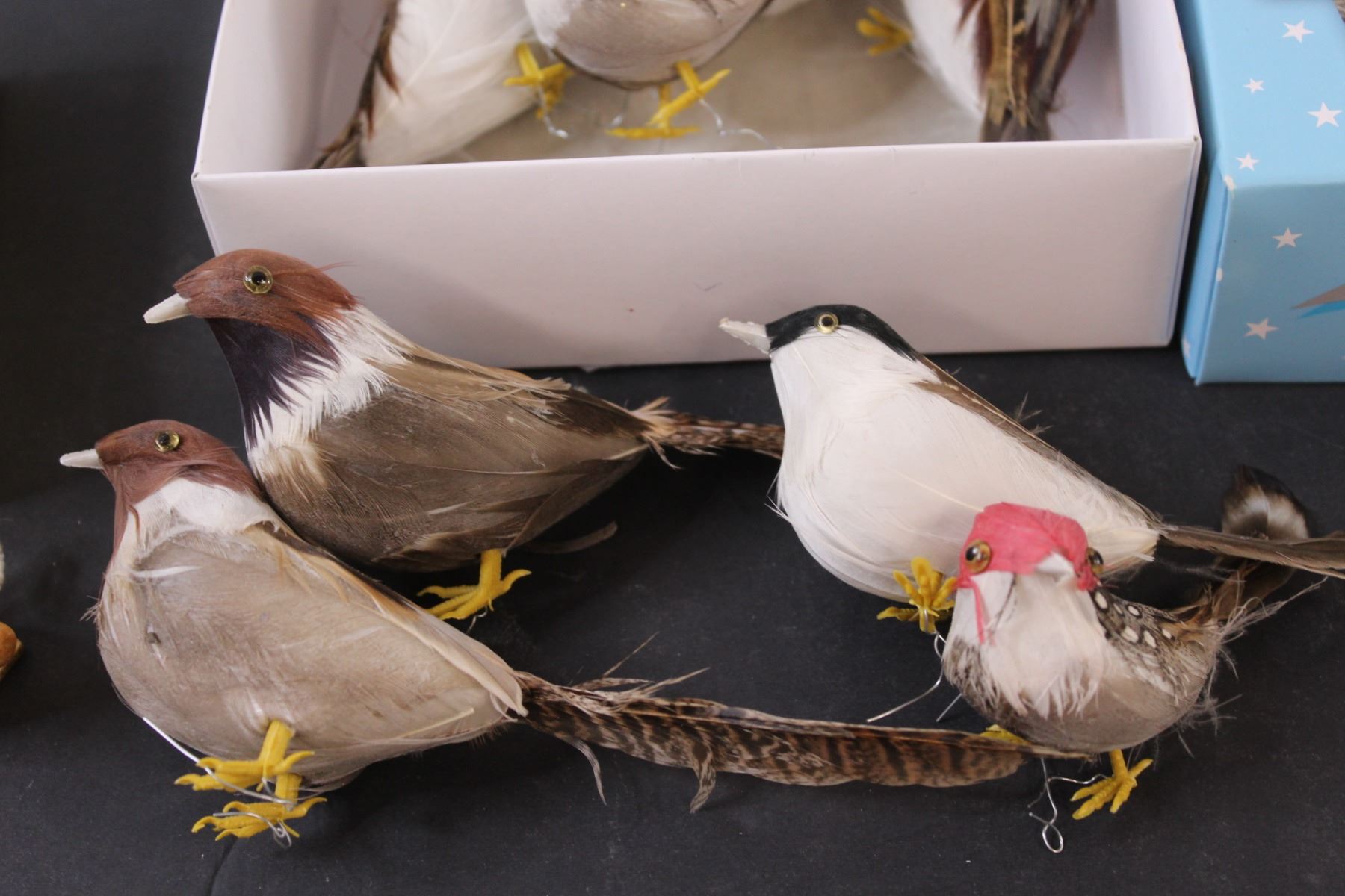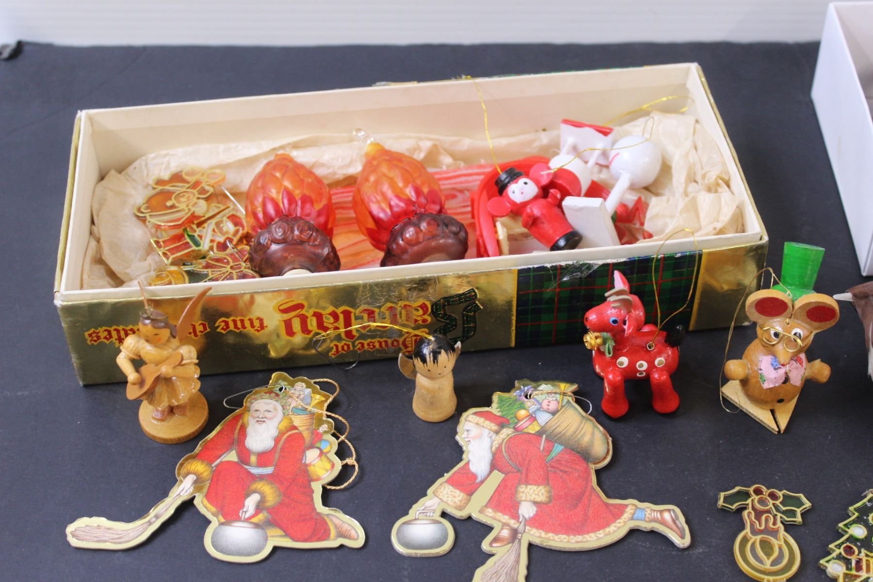 (2) Vintage Christmas Decorations: Birds, Faux Stained Glass, Wood, Misc.
