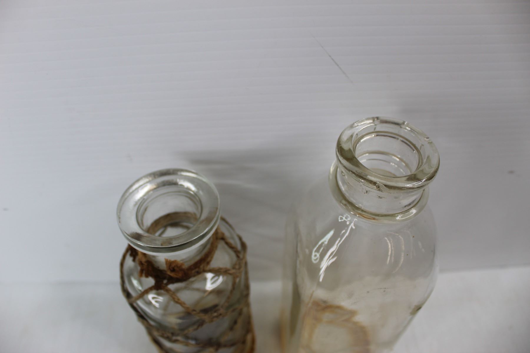 (2) Vintage Clear Glass Bottles- Great Decor Pieces