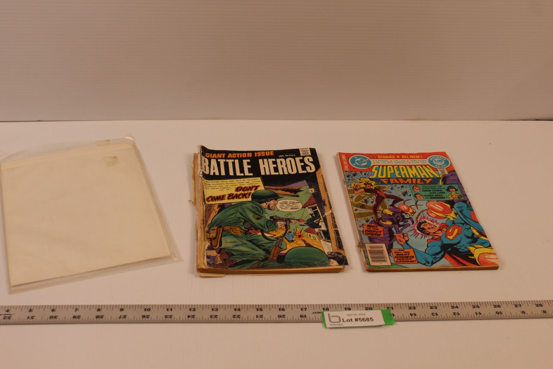 (2) Vintage Comic Books - 1966 Giant Action Issue "Battle Heros" (Poor Condition ) & 1981 DC Comics "Superman Family" (Good/Fair Condition)
