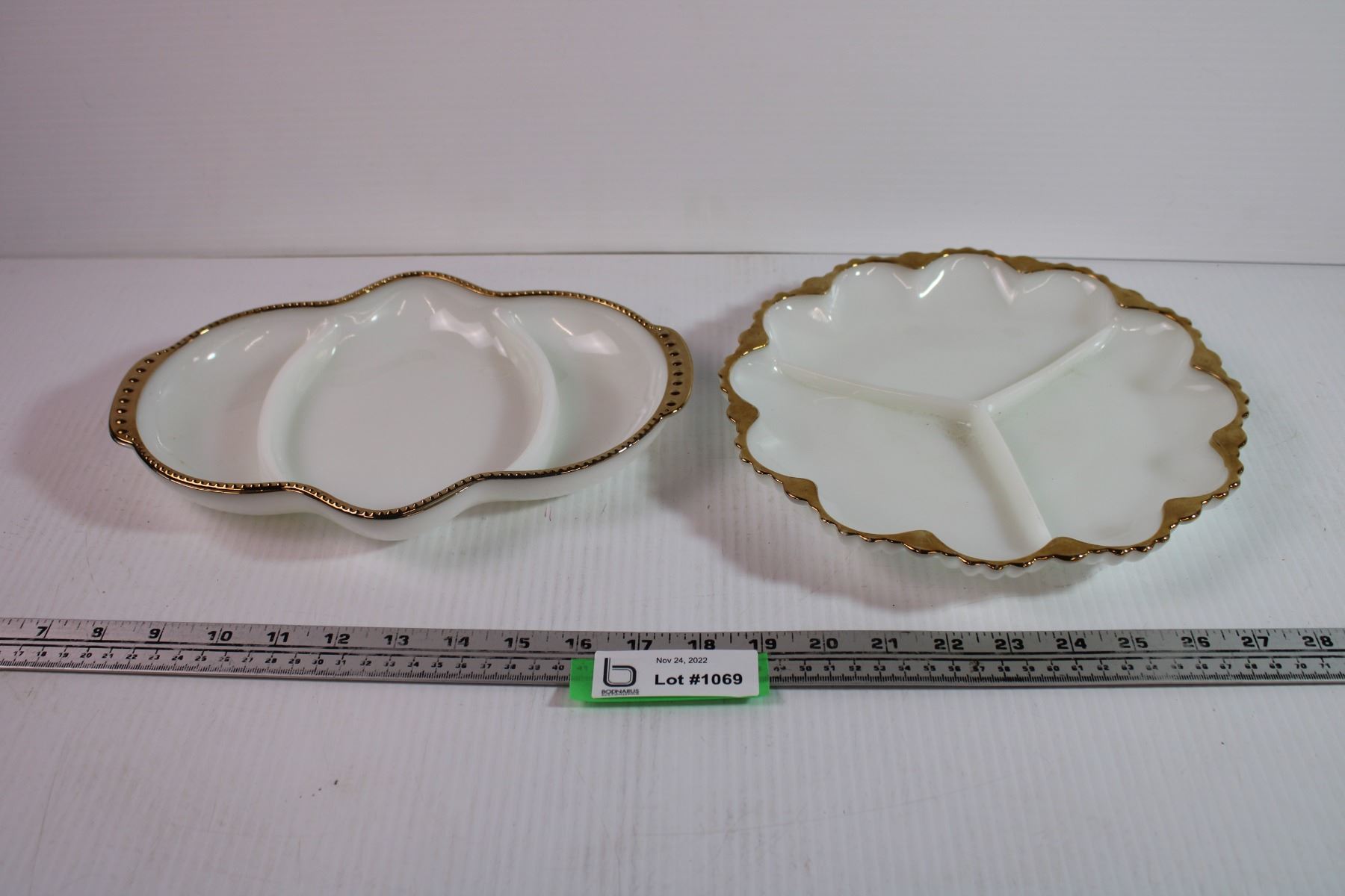 (2) Vintage Fire King Milk Glass Divided Serving Plates