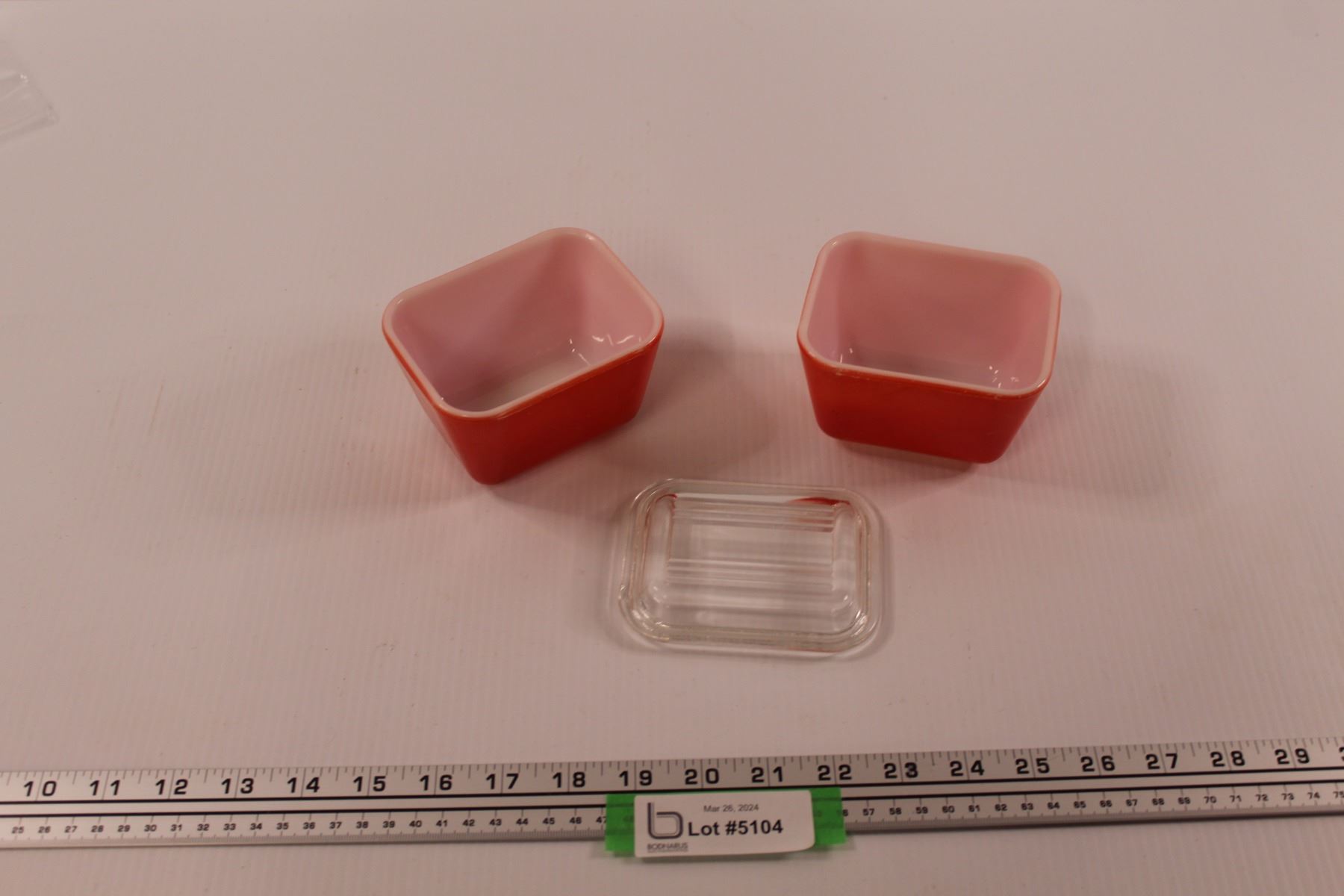 (2) Vintage Fridge Mate 500-B Pyrex Dishes w/ (1) Lid