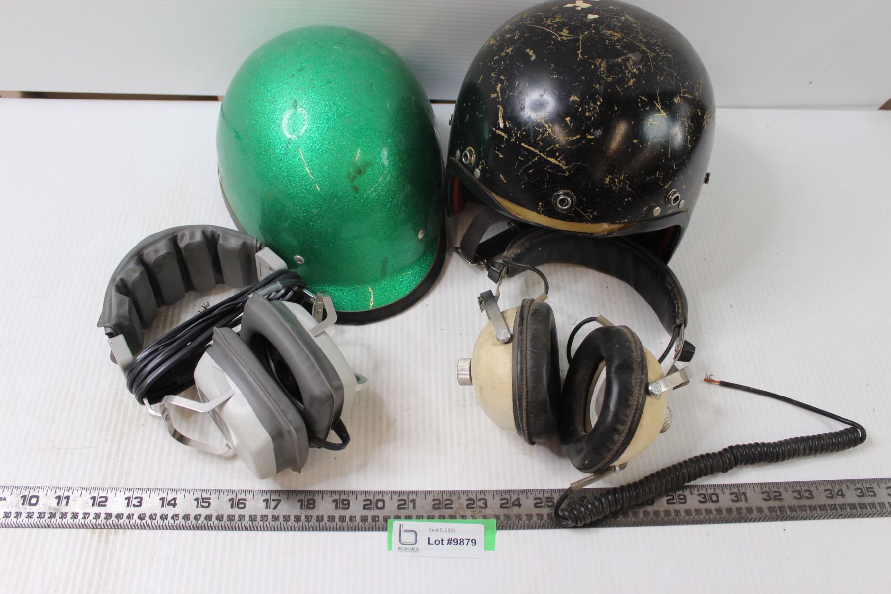 (2) Vintage Helmets and (2) Pairs of Headphones