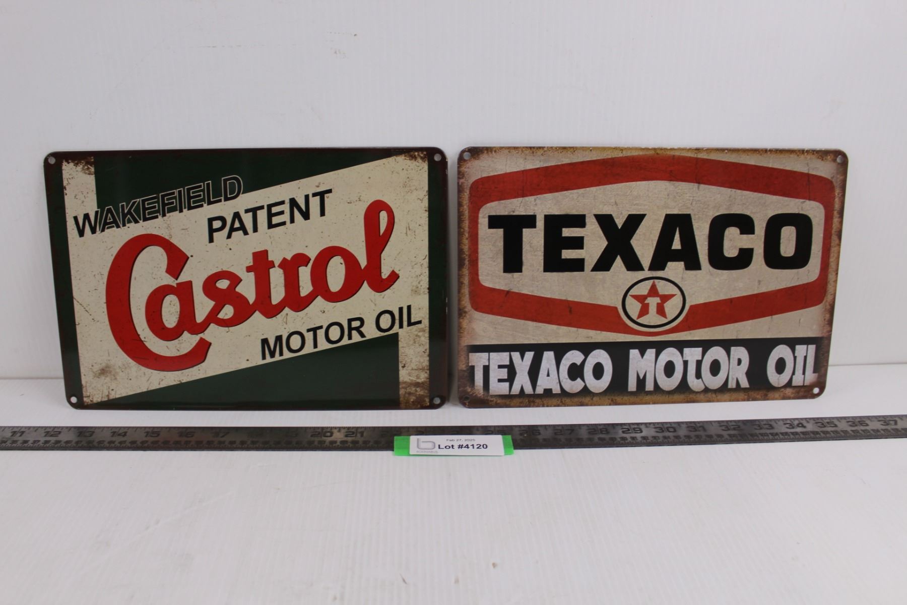 (2) Vintage Looking Metal Wall Art (Castrol & Texaco Motor Oils) 12" x 8"