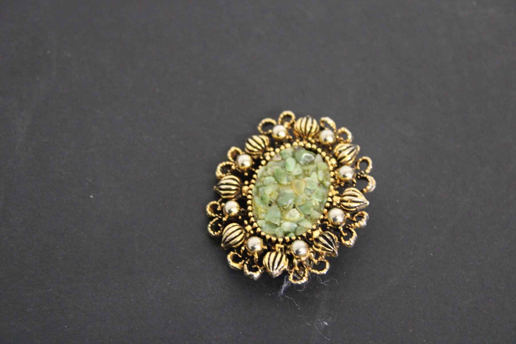 (2) Vintage Masonic Eastern Star Brooch & Florenza Jade Nuggets Brooch Pin