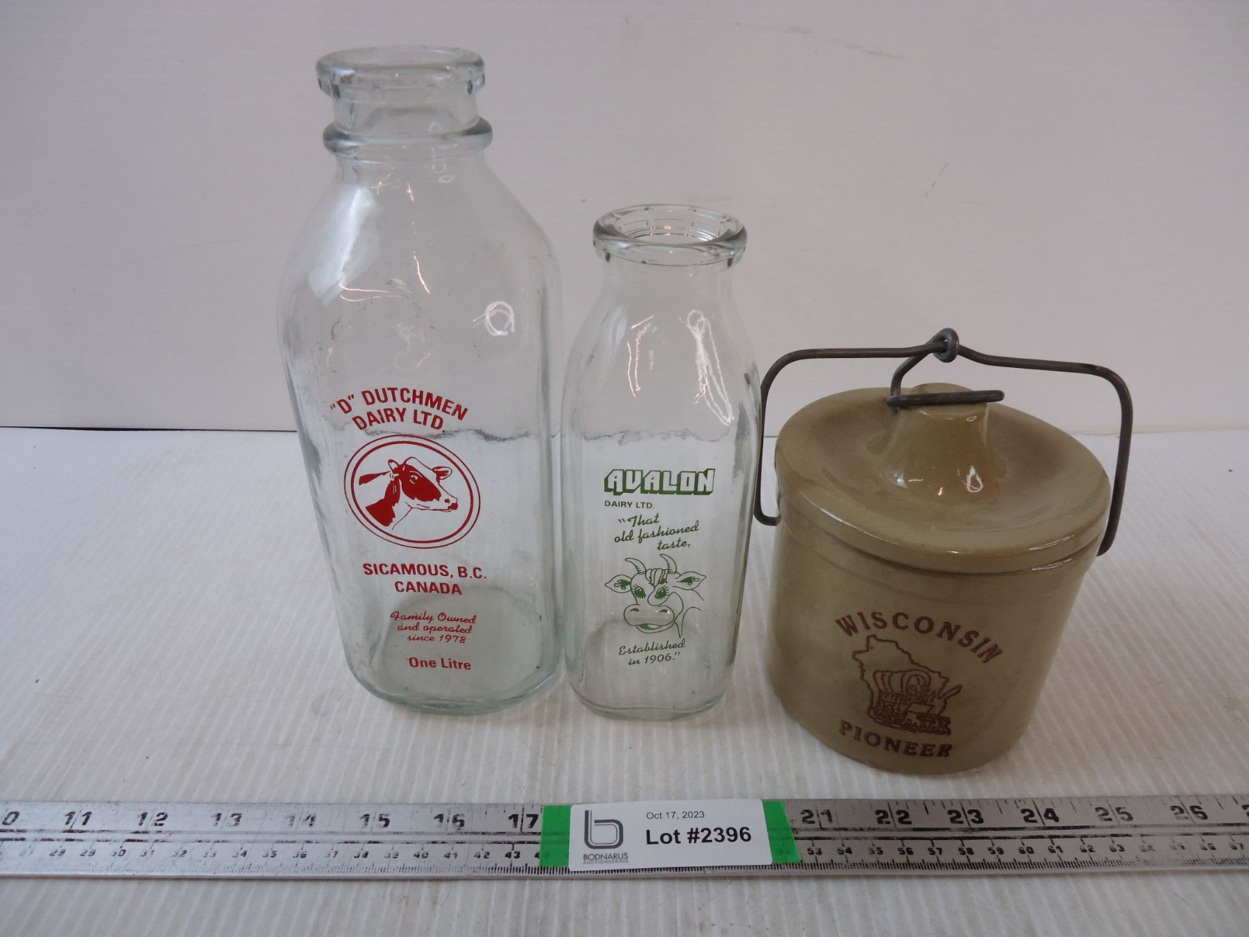 (2) Vintage Milk Bottles and Small Crock-Wisconsin Pioneer
