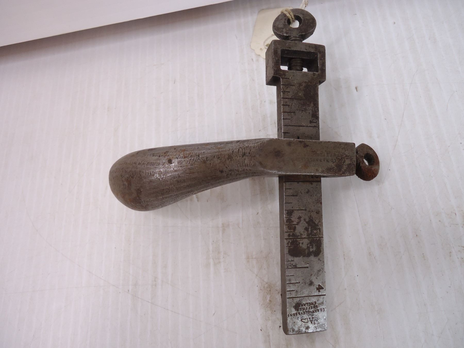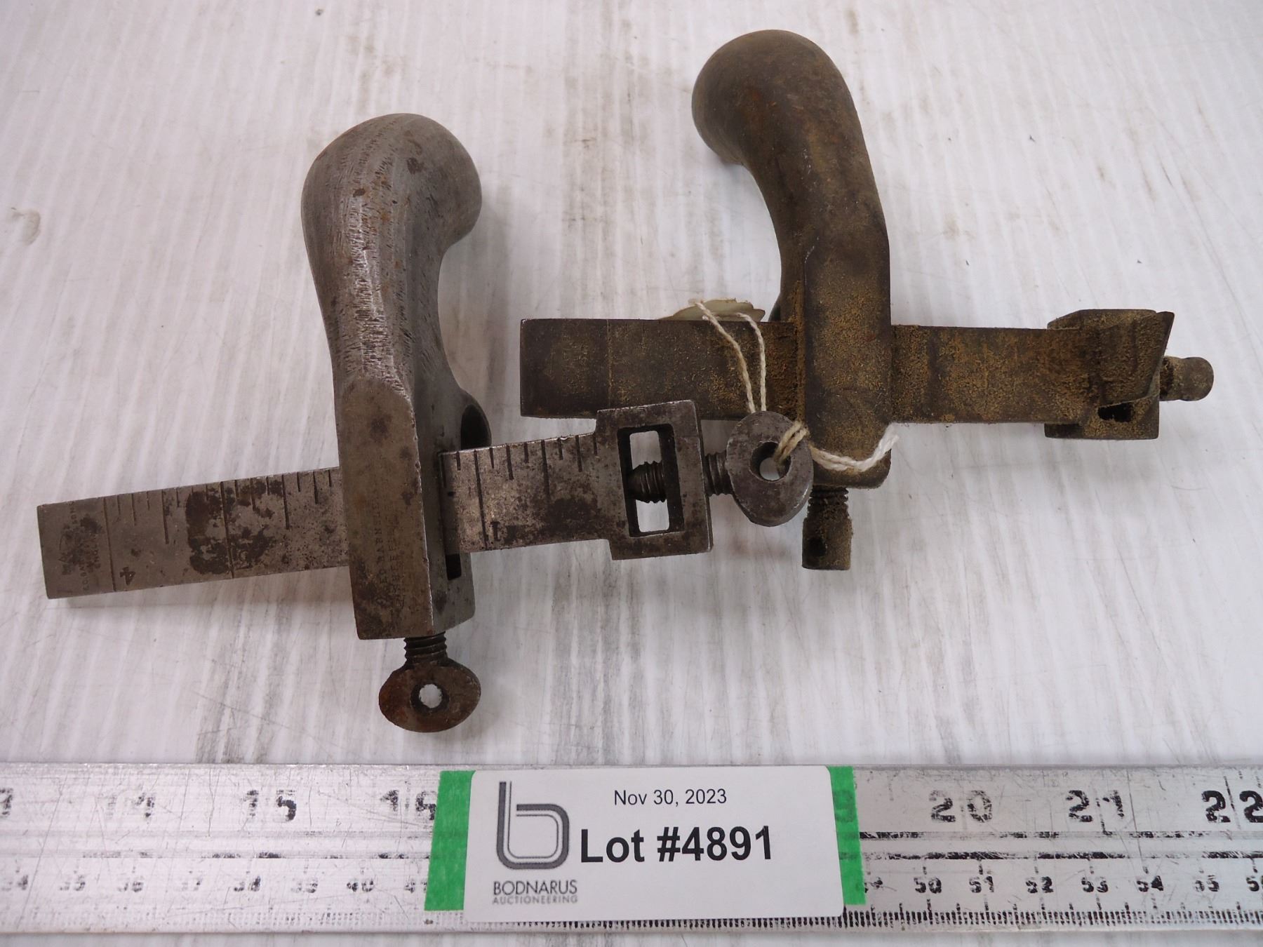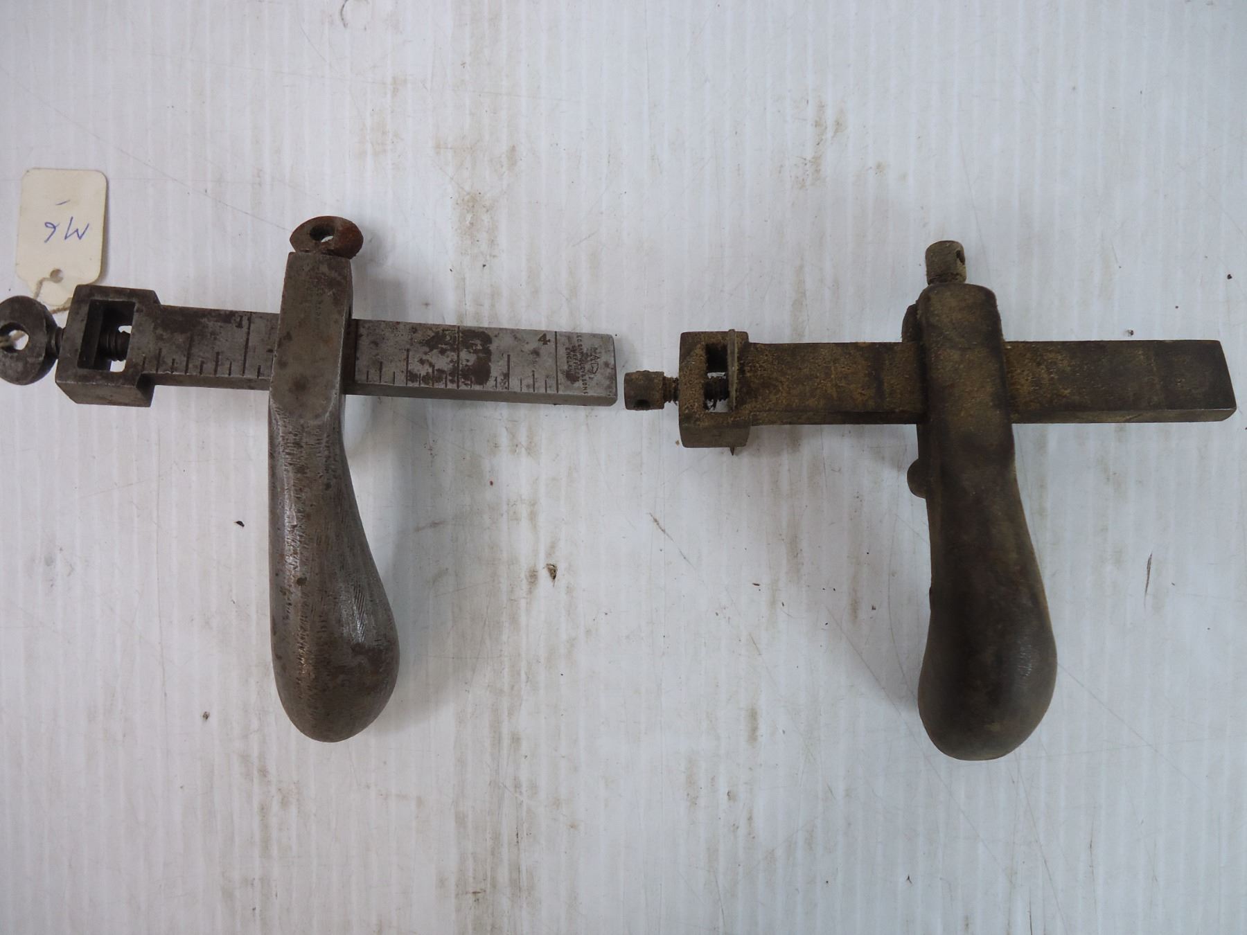 (2) Vintage Pistol Grip Draw Gauge Leather Tool