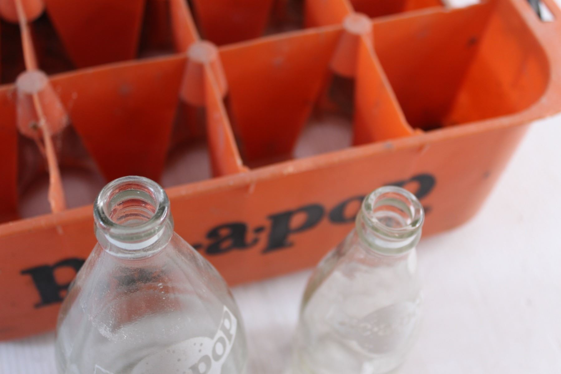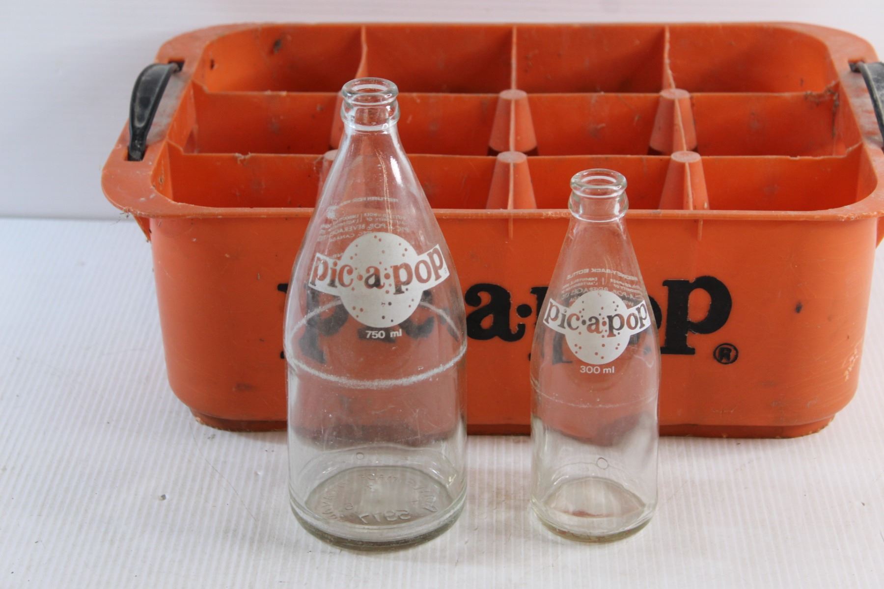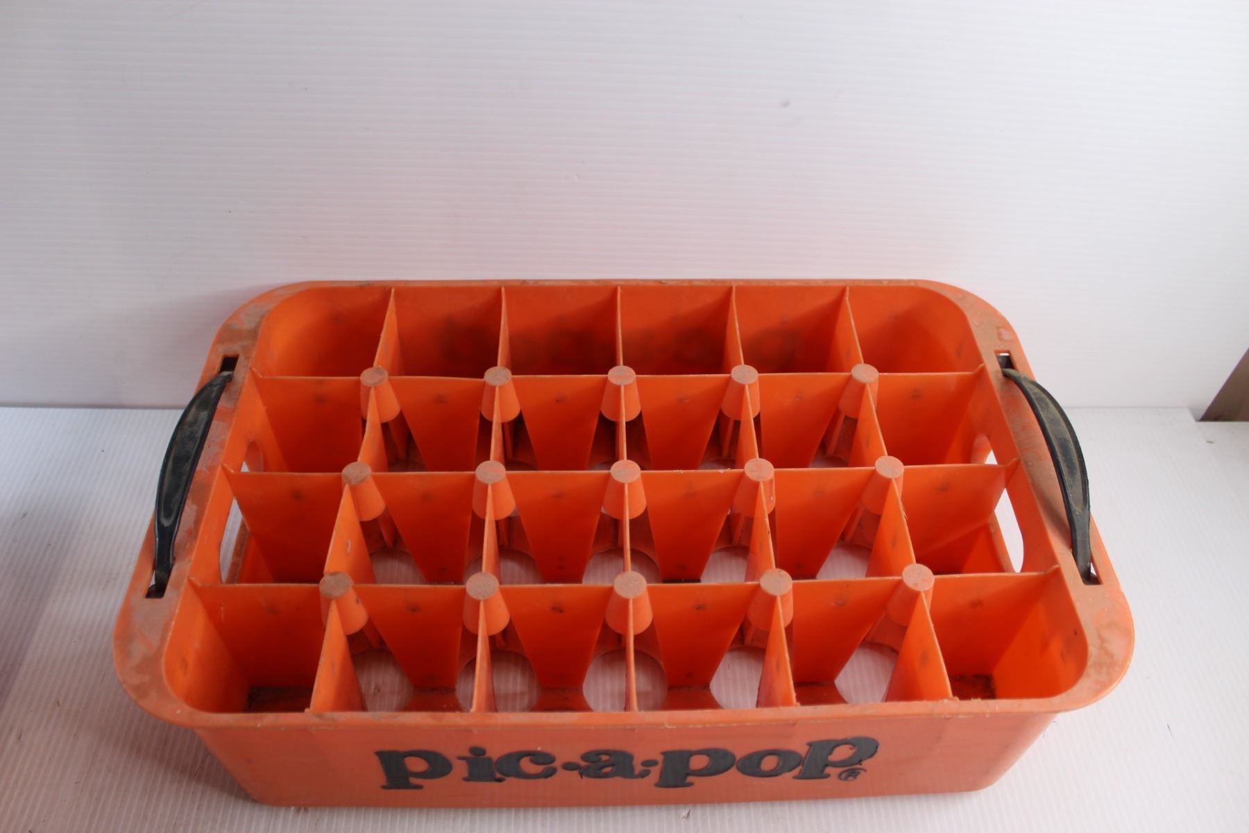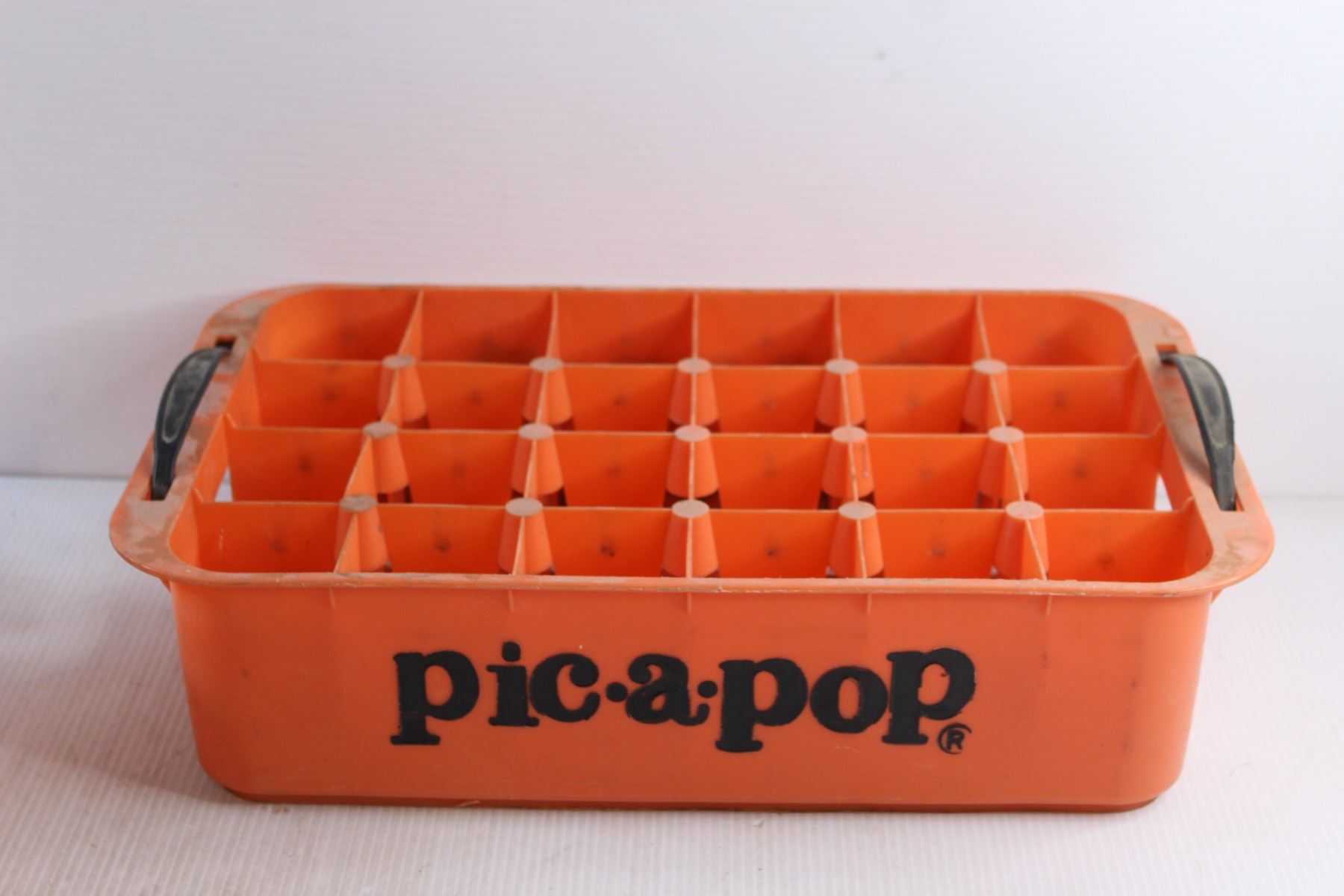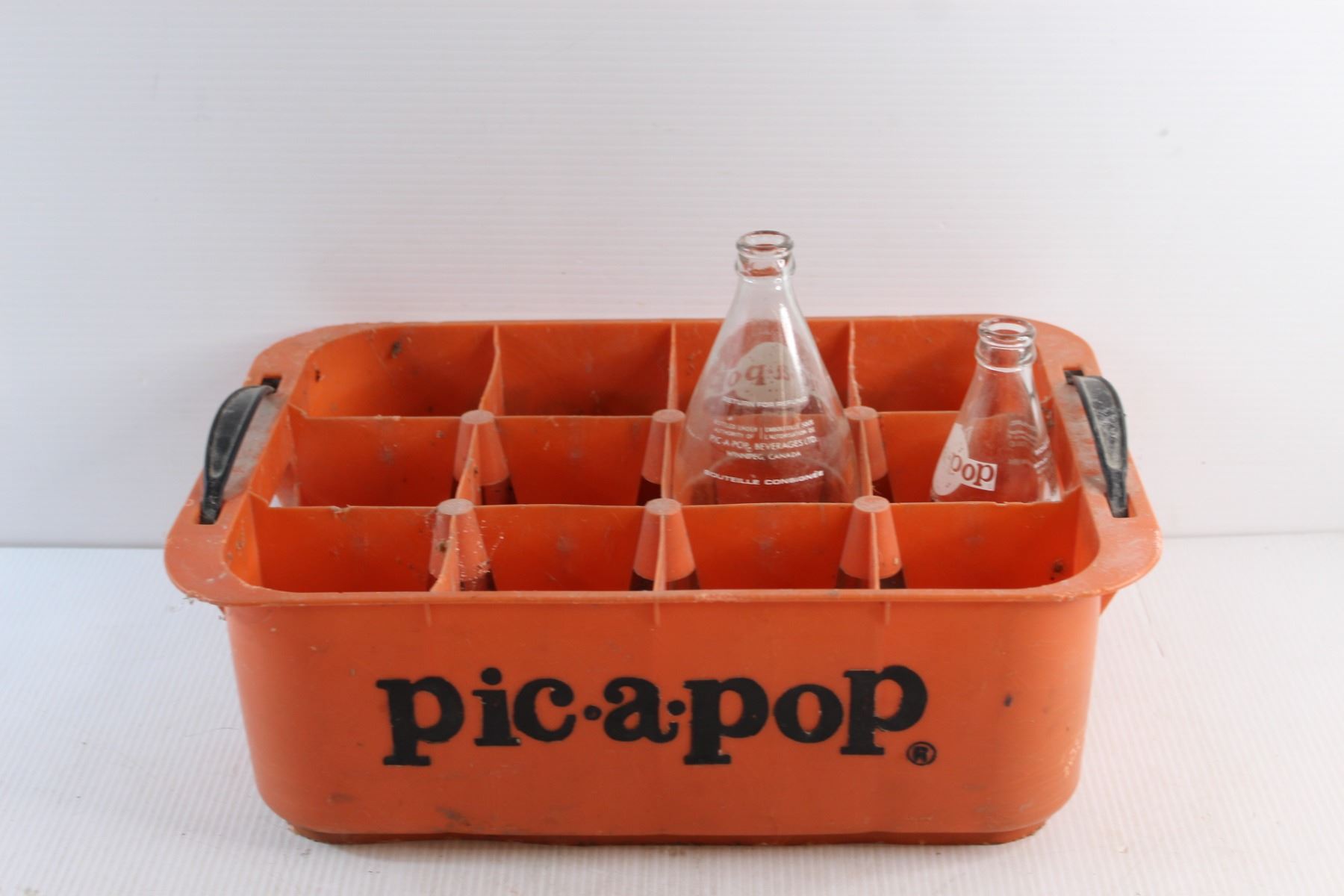 (2) Vintage Plastic Pic-a-Pop Bottle Crates and Pic-a-Pop Glass Bottles
