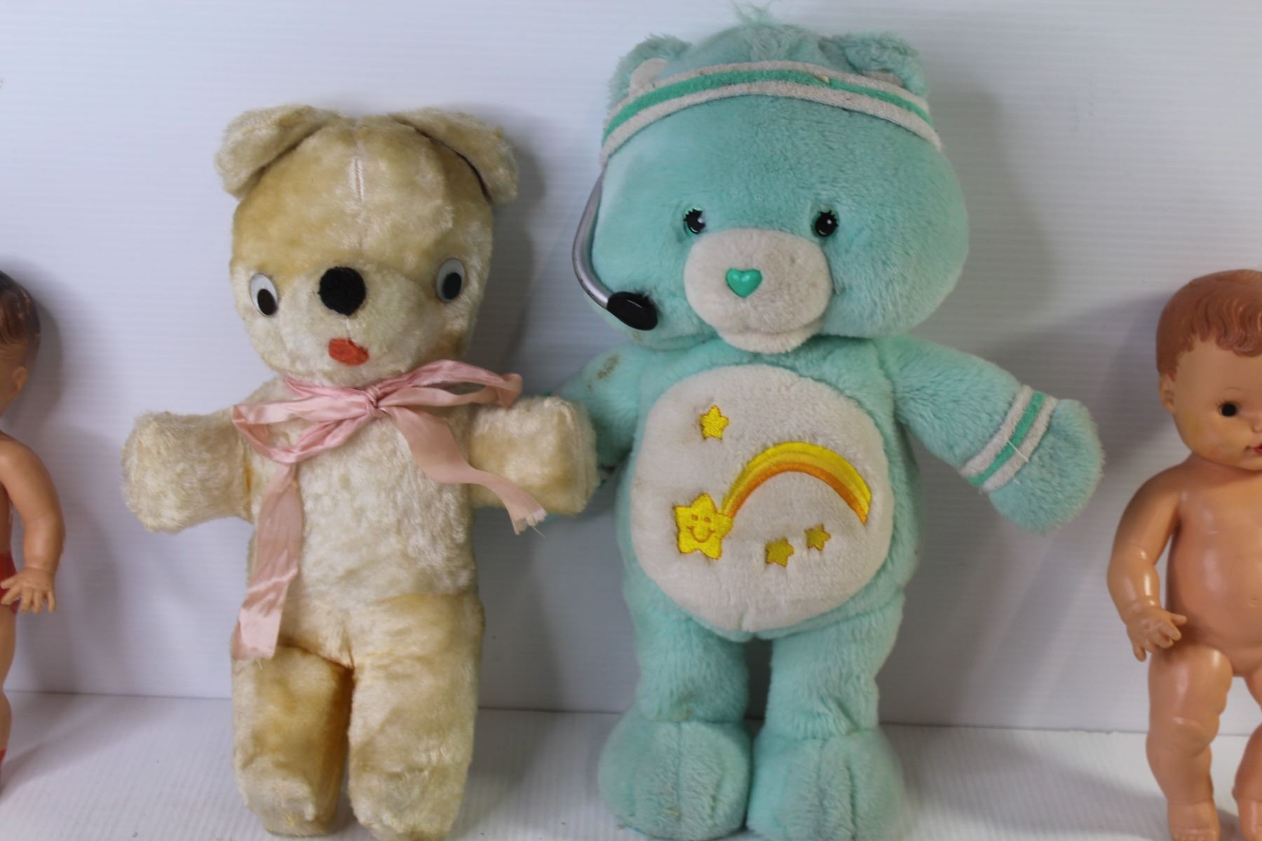 (2) Vintage Rubber Dolls (Rice Roy & Regal) - (2) Stuffed Bears (Care Bear)