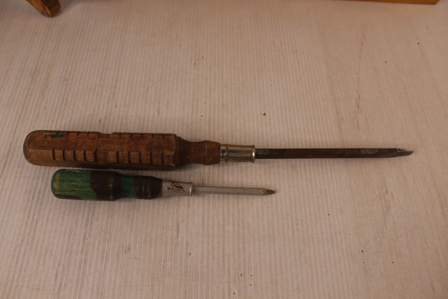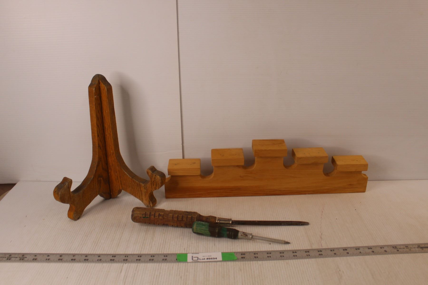 (2) Vintage Screwdrivers, Wood Stand & Wall Shelf