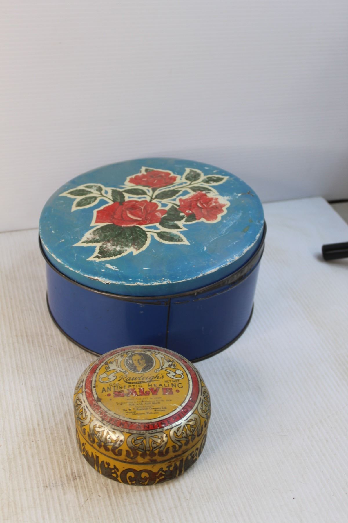 (2) Vintage Tins, (3) Pocket Knives, Misc.