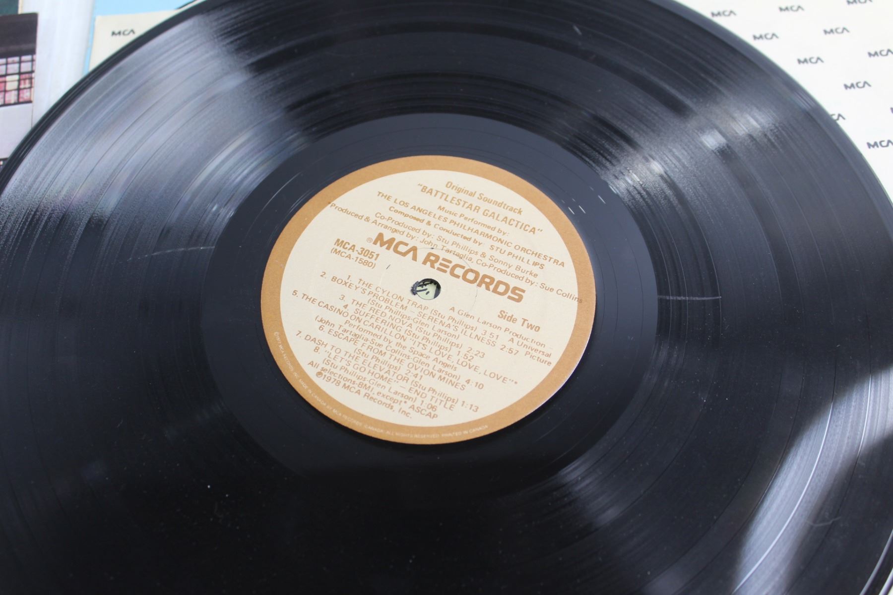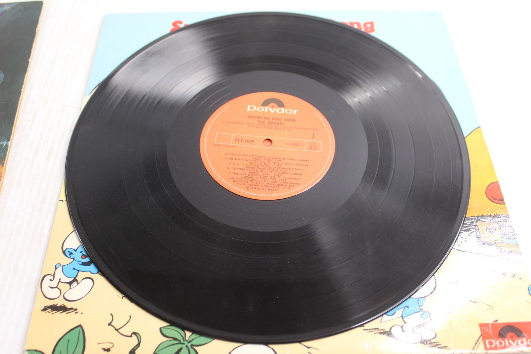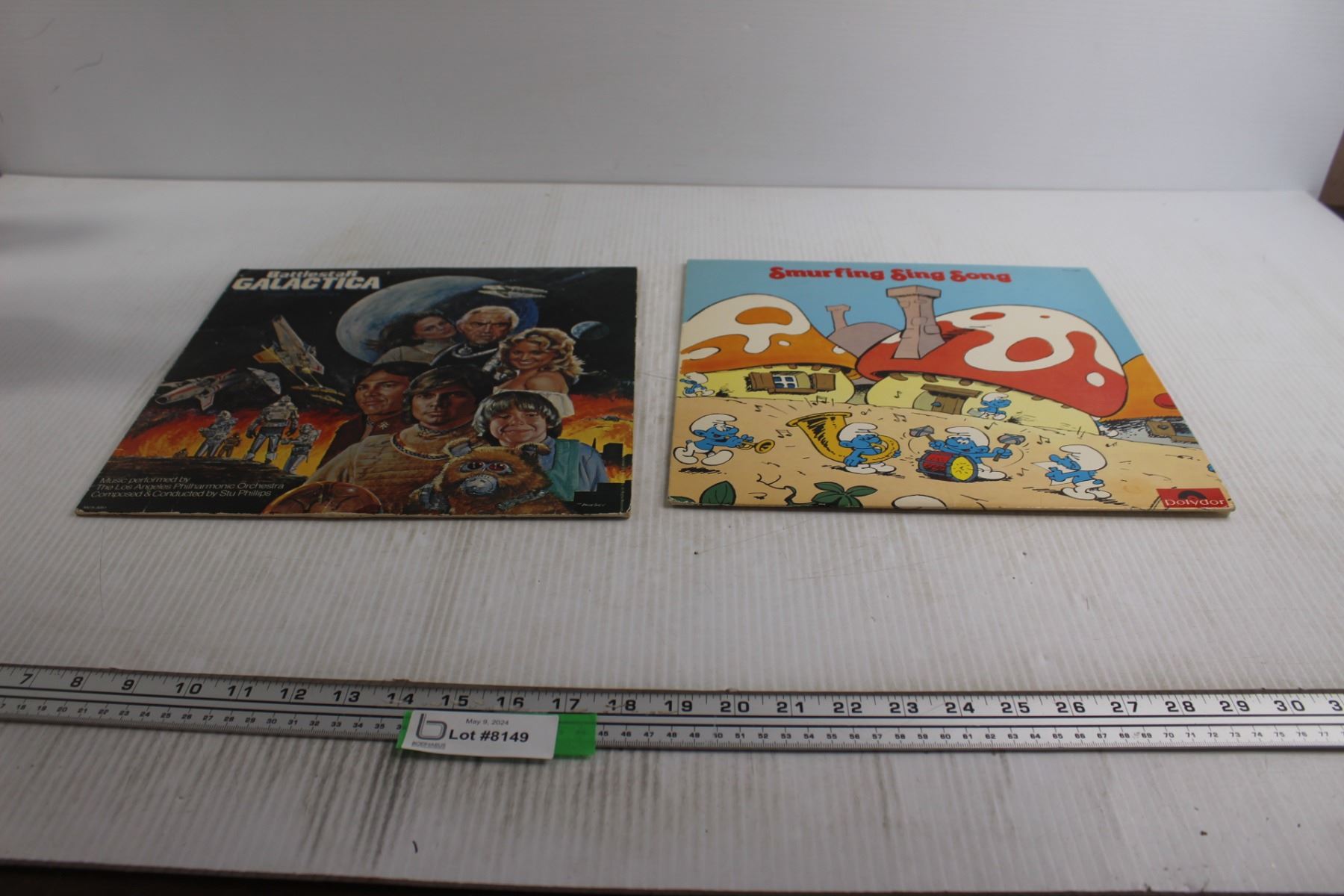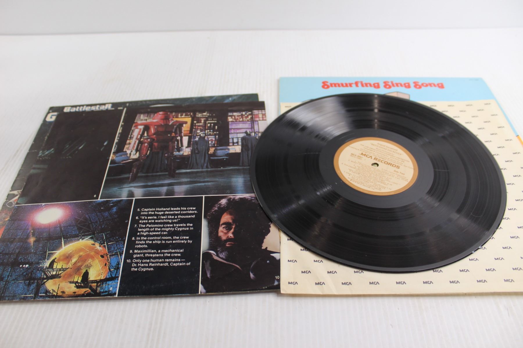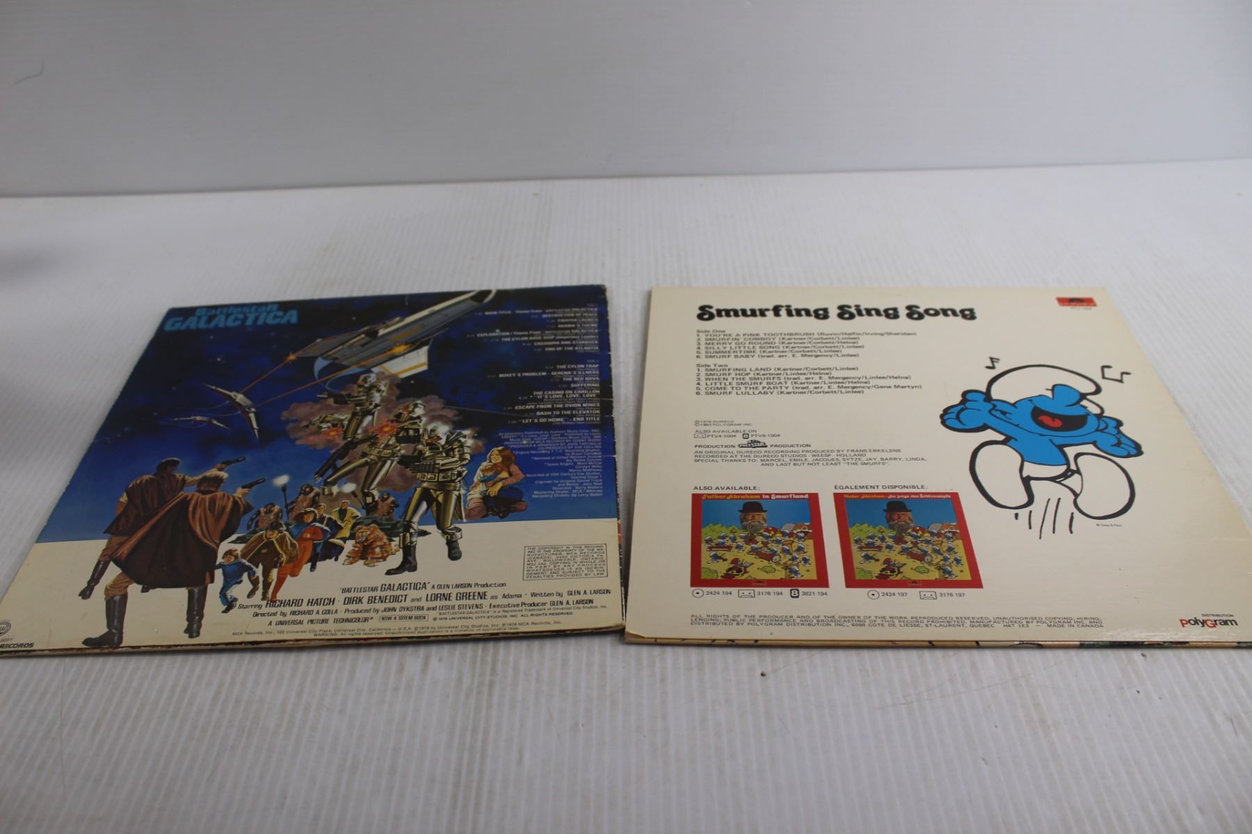 (2) Vinyl Records - Battlestar Galactica, Smurfing Sing Song