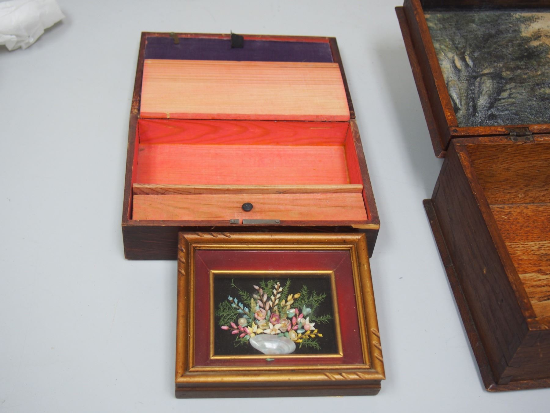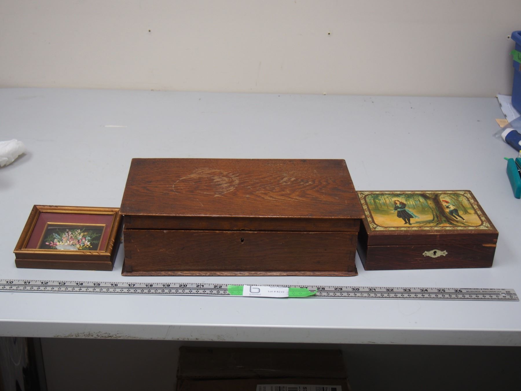(2) WOODEN STORAGE BOXES & SMALL PICTURE IN FRAME