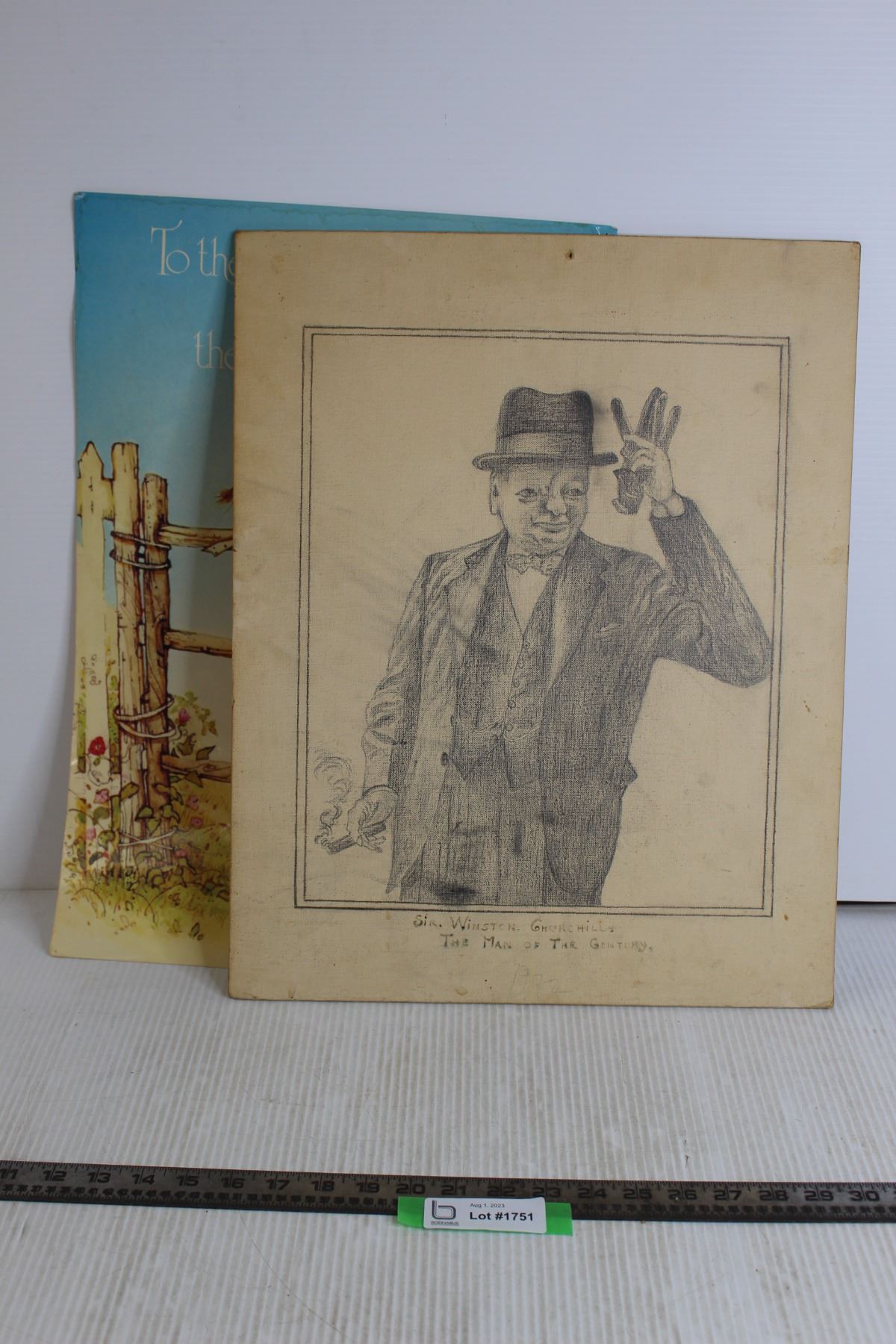 (2) Wall Art Pieces (Holly Hobbie To the House of a Friend The Way is Never Long Poster [14" x 21], Sir Winston Churchill, The Man of the Century Charcoal on Canvas [16" x 20"])