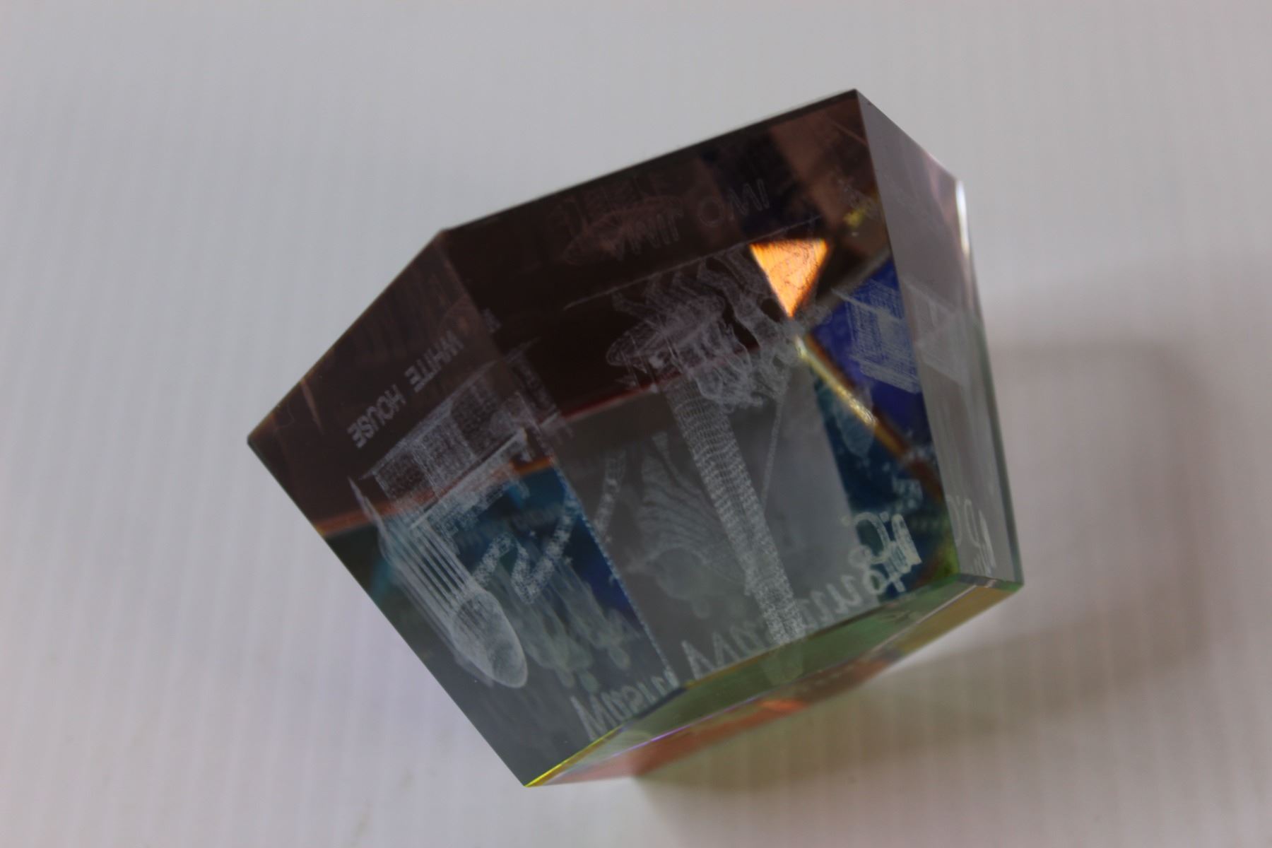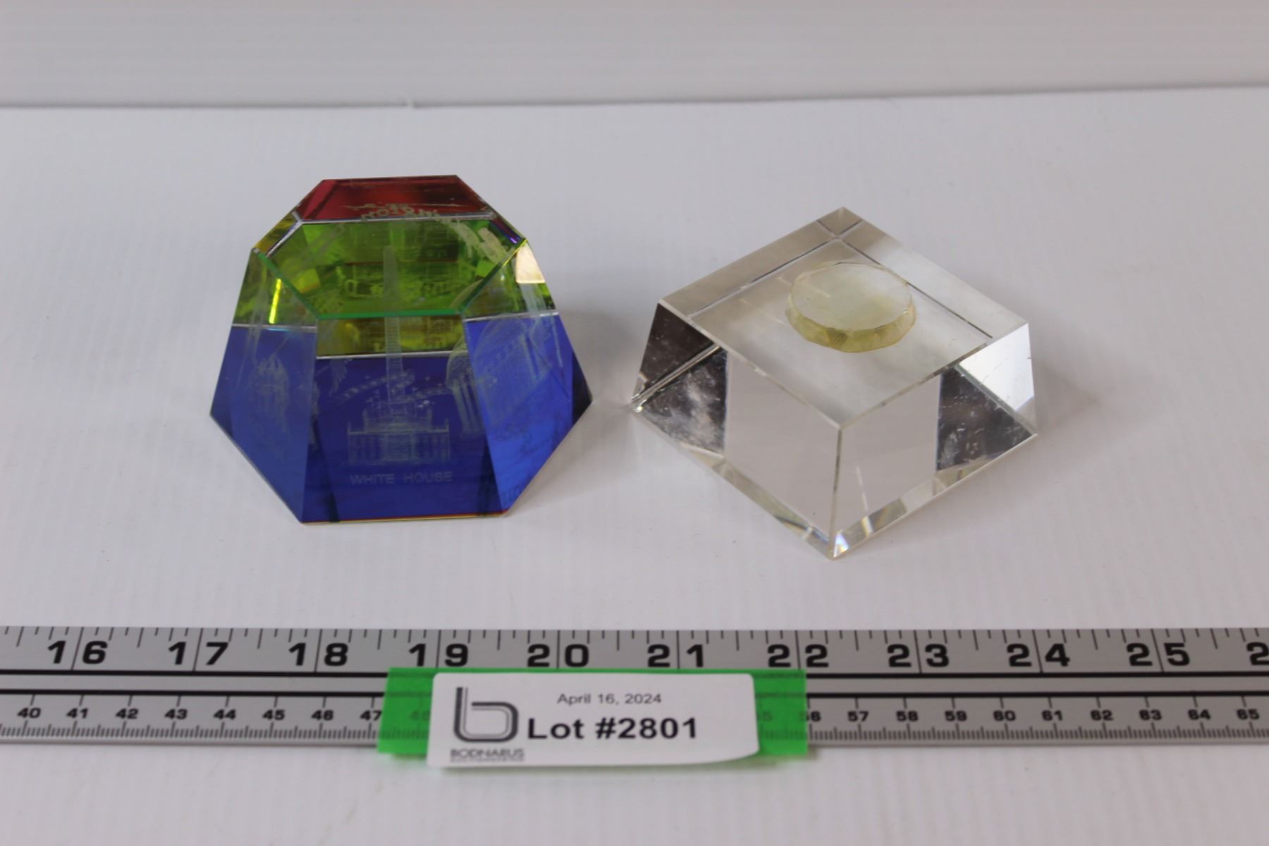 (2) Washington DC interior laser etched Glass Memorabilia Ornament; Solid Glass Square base