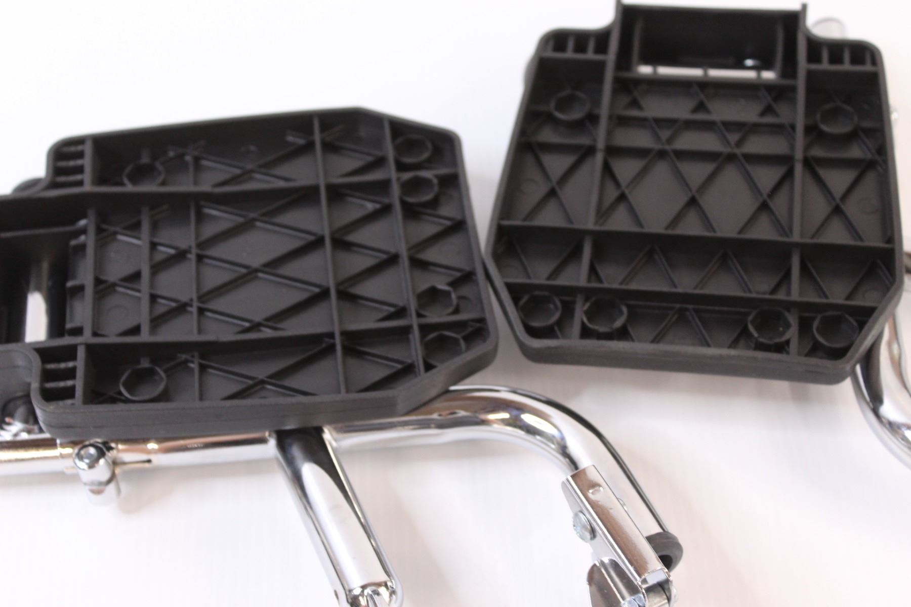 (2) Wheelchair Chrome and Hard Plastic Foot Rests / Vinyl strap & Allen Wrench