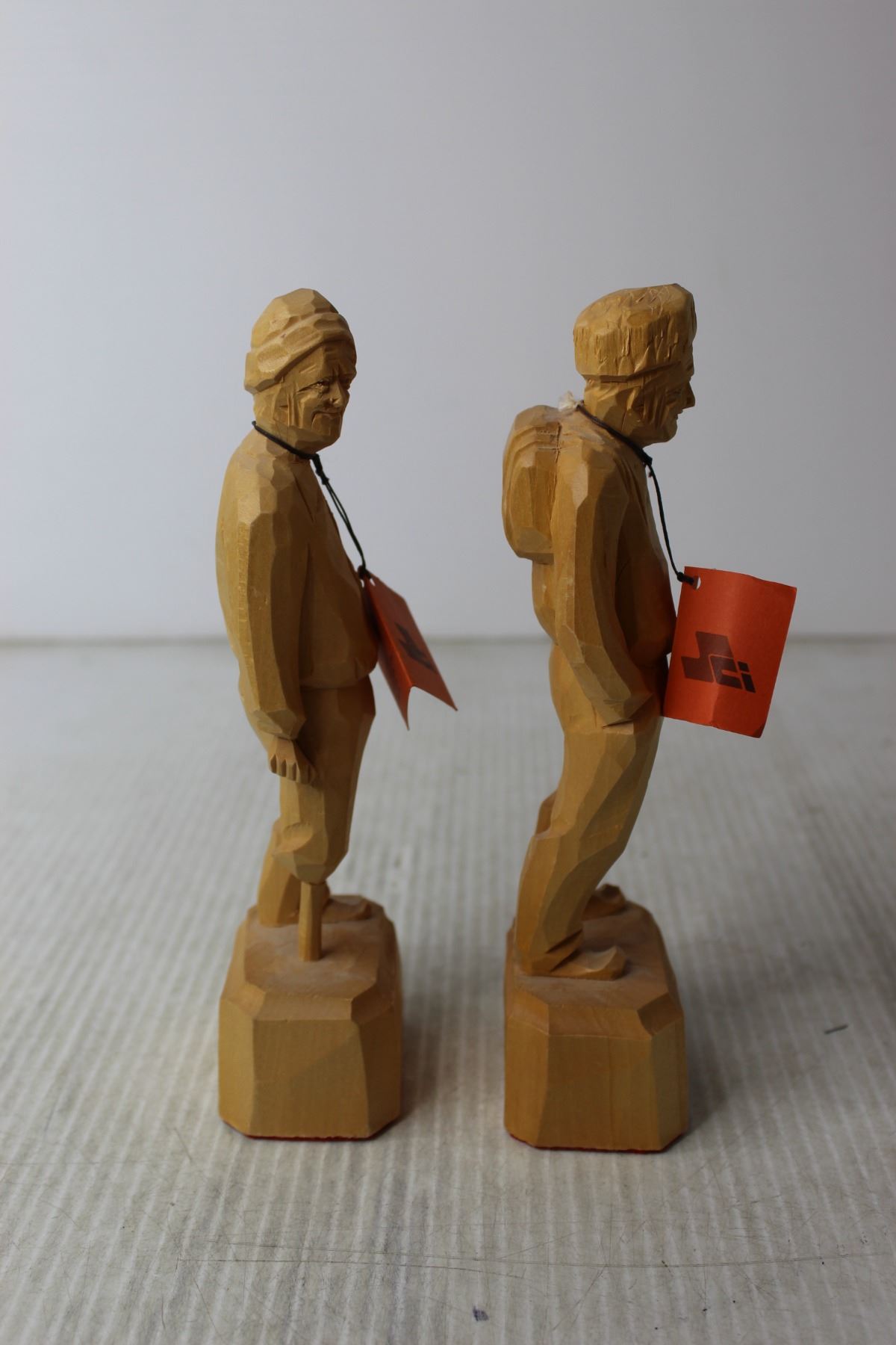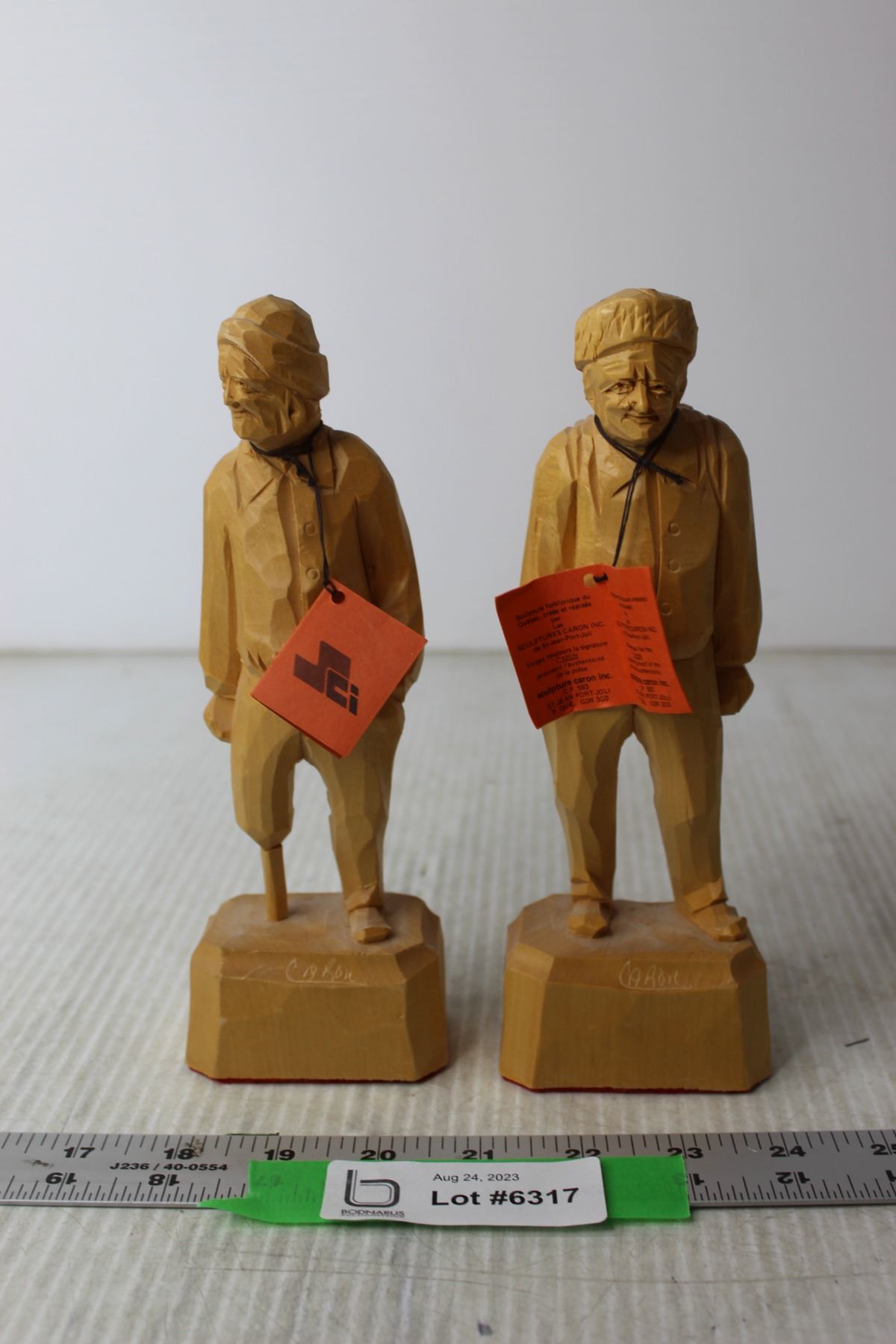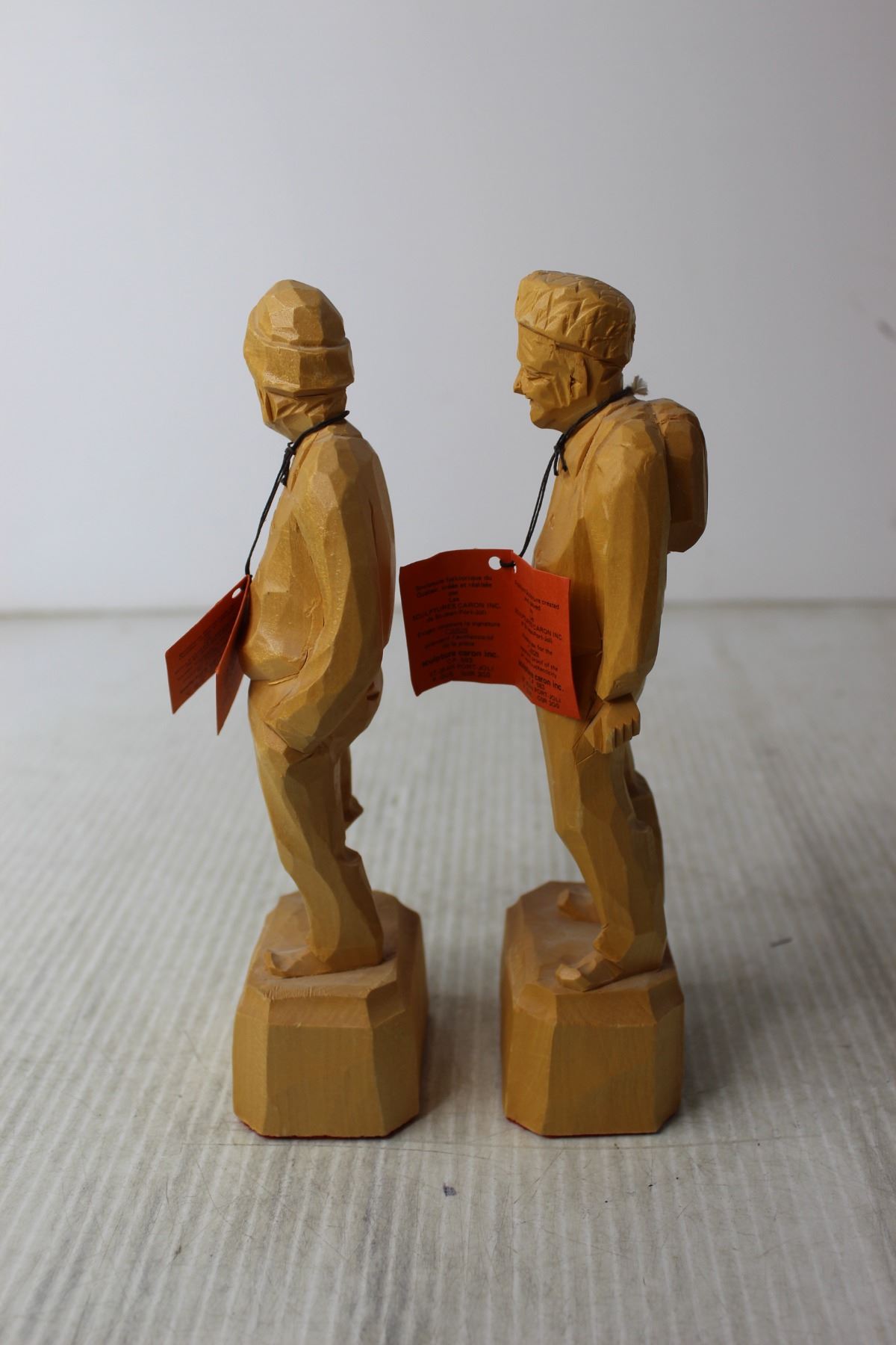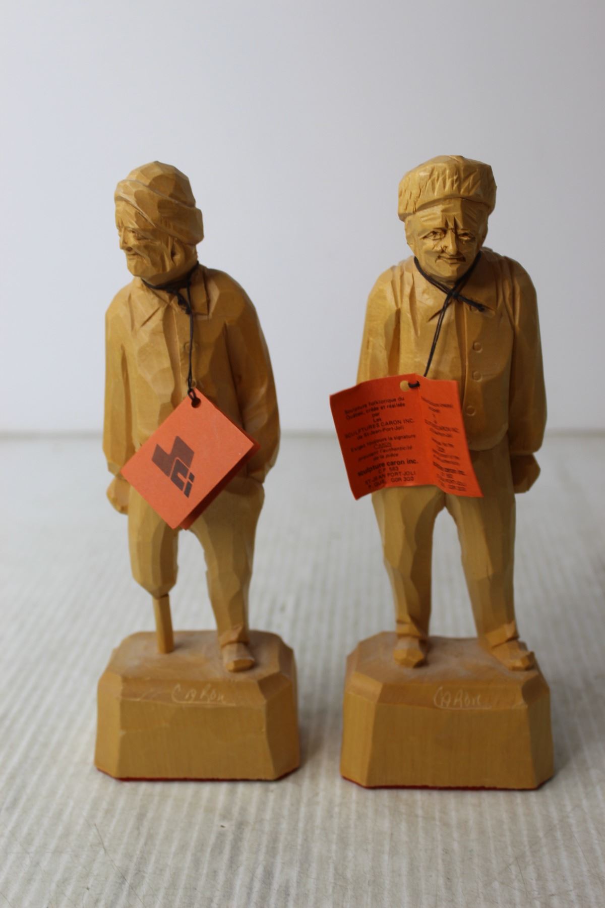 (2) Wood Carved Old Men Figures by Caron
